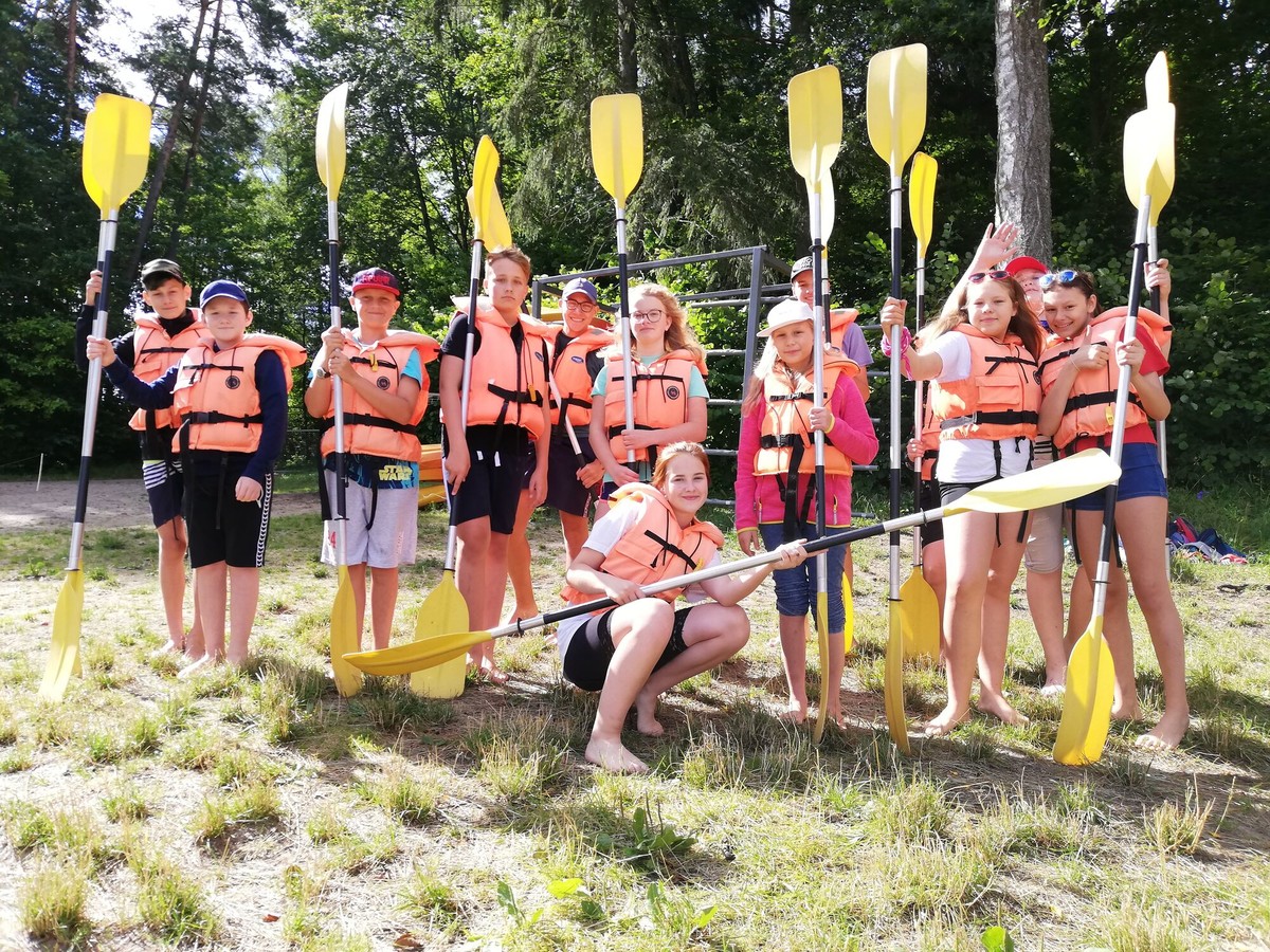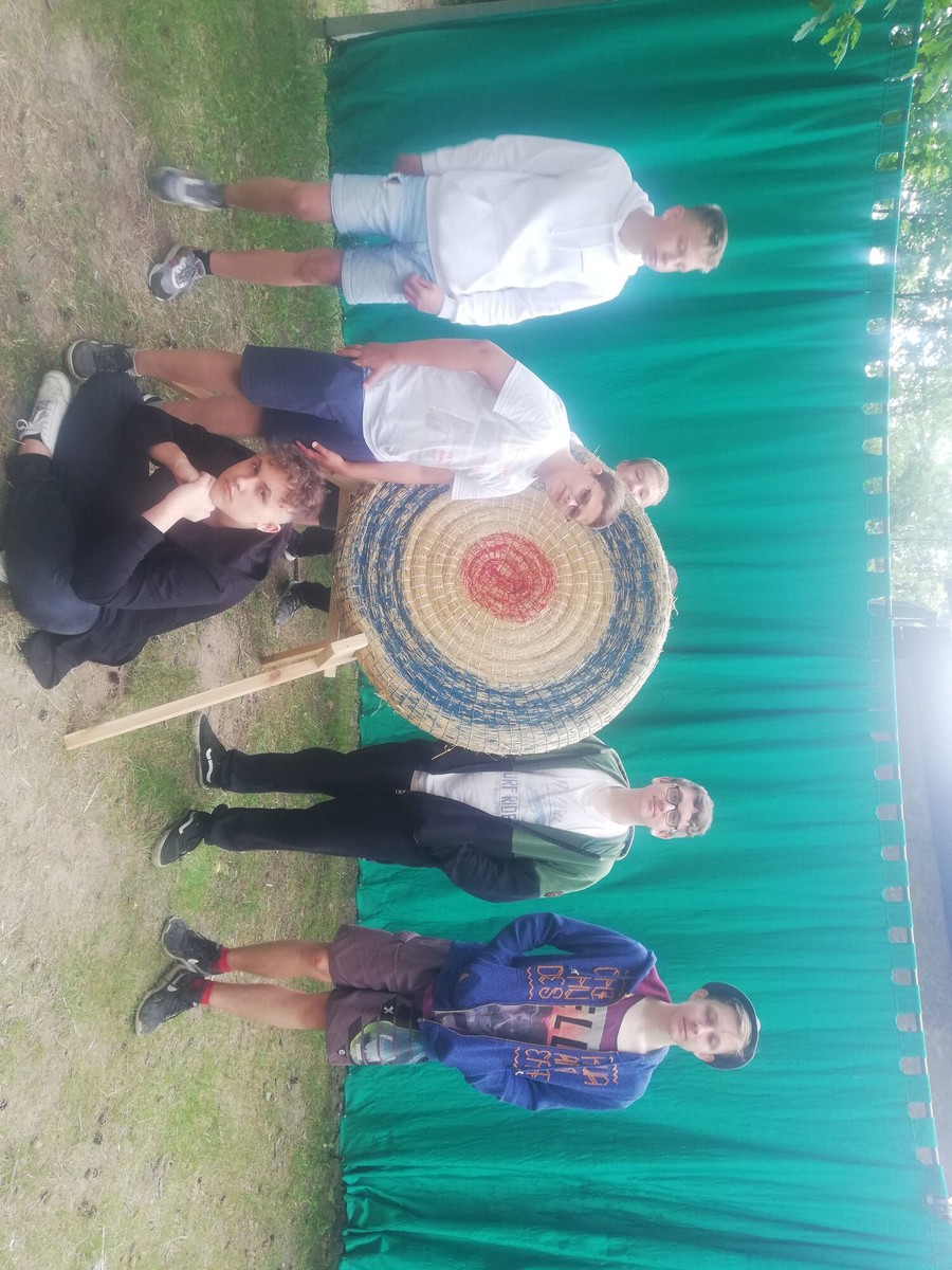 Dzisiejszy dzień zaczęliśmy od poznania budowy łuku i strzały oraz prawidłowej postawy strzeleckiej. Nauczyliśmy się strzelać z łuków, a najlepszym strzelcem okazał się Wiktor. Udaliśmy się do lasu i poznaliśmy podstawy survivalu oraz jego rodzaje. Budowaliśmy tam schronienie z wojskowej pałatki i poznaliśmy wyposażenie puszki survivalowej. Układaliśmy też wieżę ze skrzynek, jednocześnie się na nią wspinając. Najwyżej wspięli się Wiktor i Zuzia. Wypłynęłyśmy na wyprawę kajakami po jeziorze. Udało nam się znaleźć sprawcę przestępstwa, które miało miejsce w pewnym włoskim miasteczku. A dzisiejszy dzień zakończyliśmy świetną zabawą taneczną przy muzyce.