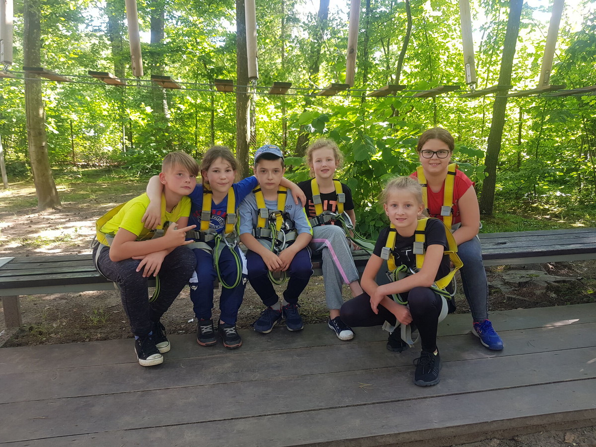 Dzisiaj wspólnymi siłami pokonaliśmy bazyliszka. Przeszliśmy park linowy, co było dla nas dużym wyzwaniem, ale wszyscy poradziliśmy sobie wspaniale. Później wzięliśmy udział w meczu quidditcha. Gra była zacięta i wskrzesiła w nas ducha rywalizacji. Bawiliśmy się wspaniale. Na koniec wspólnie bawiliśmy się na zabawie tanecznej.
