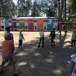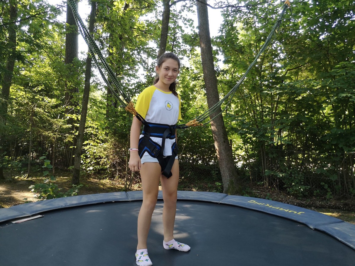Dzień rozpoczęliśmy od gier zespołowych, szczególnie do gustu przypadła nam siatkówka. Później mieliśmy czas na plażowanie i kąpiel w naszym jeziorze. Przed obiadem mieliśmy jeszcze zajęcia eurobungee, skakaliśmy aż do chmur! Po południu zagraliśmy w unihokeja i wspinaliśmy się na wieże ze skrzynek, Hania wspięła się najwyżej! Dzień zakończyliśmy zabawą taneczną przy muzyce.