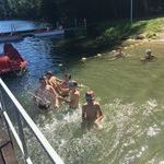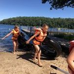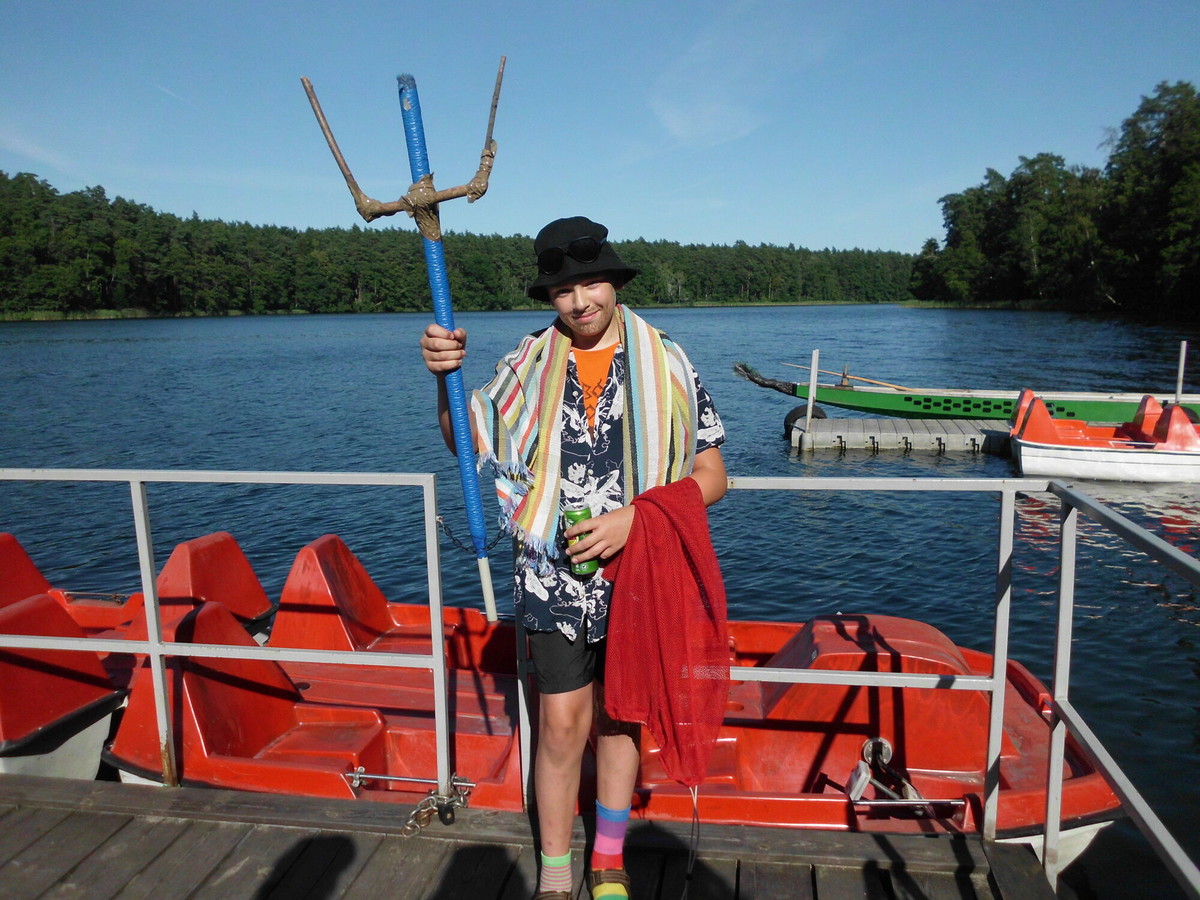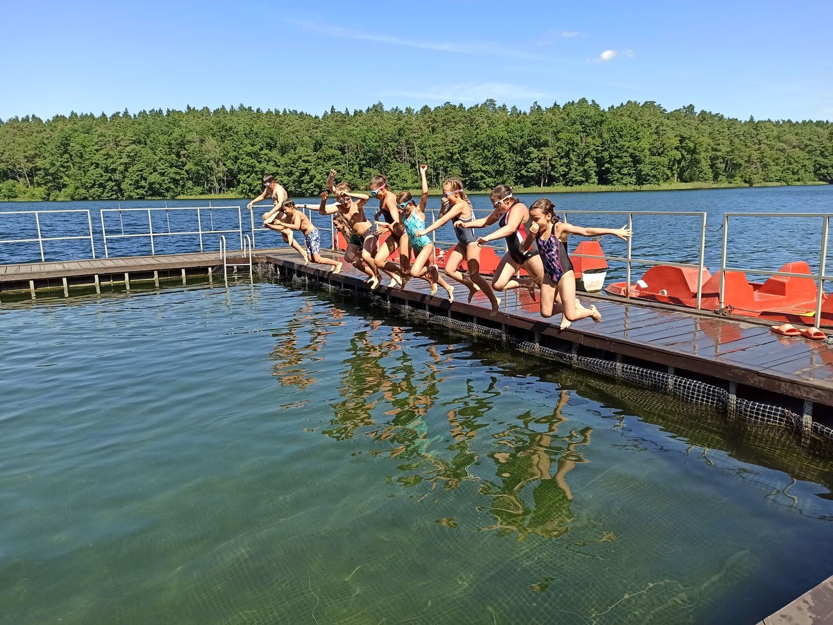 Dziś rano zaraz po rozgrzewce udaliśmy się na wspólne śniadanie. Rozegraliśmy pojedynek we frisbee. Następnie poznaliśmy zasady panujące na kąpielisku i pod czujnym okiem pana ratownika pluskaliśmy się w jeziorze. Po obiedzie wspinaliśmy się na skrzynkach, wzięliśmy udział w leśnej grze terenowej oraz udaliśmy się w rejs smoczą łodzią, a wieczorem wspólnie bawiliśmy się przy muzyce.