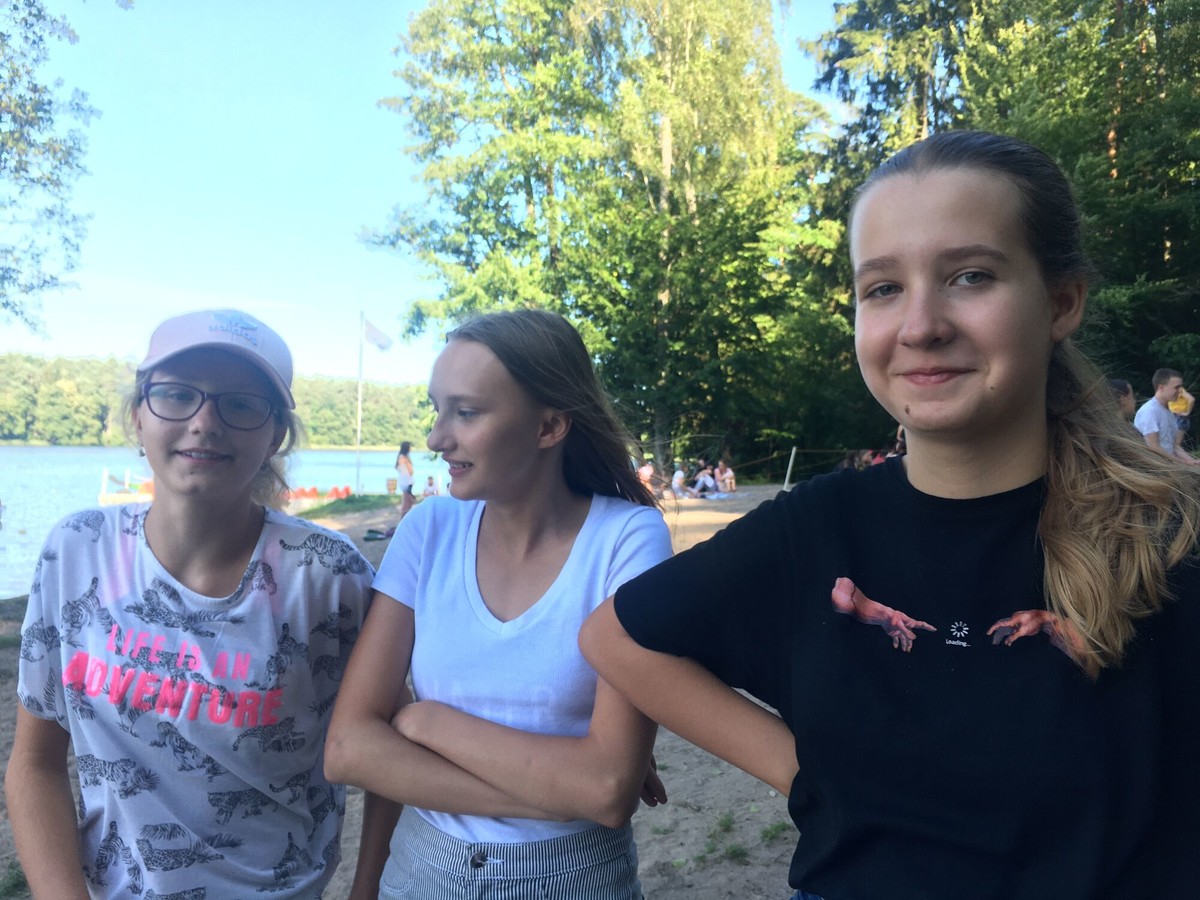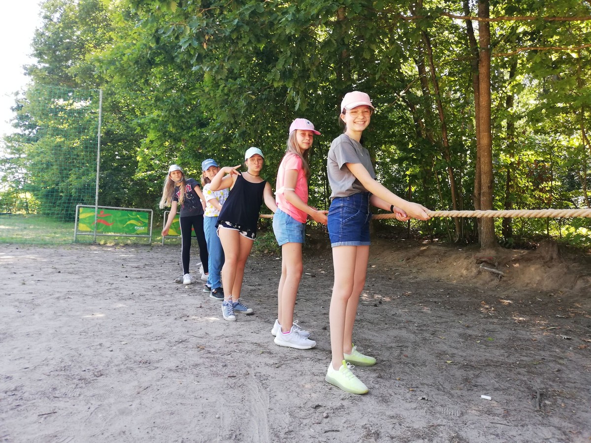 Dzień zaczęliśmy od gry fabularyzowanej mafia w miasteczku, w której stworzyłyśmy własną historię wcielając się w wymyślonych przez nas mieszkańców. Następnie wzięłyśmy udział w zajęciach Akcja Integracja, dzięki którym lepiej się poznałyśmy i nauczyłyśmy się współpracować. Potem doskonaliłyśmy nasze techniki pływackie i świetnie bawiłyśmy się na parku linowym. Wieczorem grałyśmy w księżniczki i zamki oraz piekłyśmy kiełbaski na ognisku.