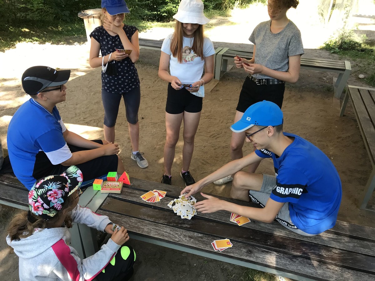 Dzisiejszy dzień był pełen atrakcji, zaraz po śniadaniu mieliśmy pierwsze zajęcia z instruktorem na ściance wspinaczkowej, było super! Następnie zdobyliśmy kolejne umiejętności, a mianowicie strzelanie z łuku. Przed obiadem zdążyliśmy jeszcze opalać się i pograć w gry karciane na plaży. Po przerwie wróciliśmy do zajęć, graliśmy w piłkę na opak. Jesteśmy ciekawi, co będzie działo się jutro.