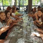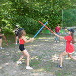 Dziś rano wzięliśmy udział w Bitwie o Sztandar z pozostałymi grupami herosów. Po stoczeniu ciężkiej walki udało nam się wygrać i zdobyć sztandar! Następnie nauczyliśmy się władać mieczem. Po obiedzie byliśmy na plażowaniu, gdzie pływaliśmy w jeziorze oraz graliśmy w gry karciane. Po kolacji zbudowaliśmy wielki mur obronny. Wieczorem tańczyliśmy z Dionizosem przy muzyce.