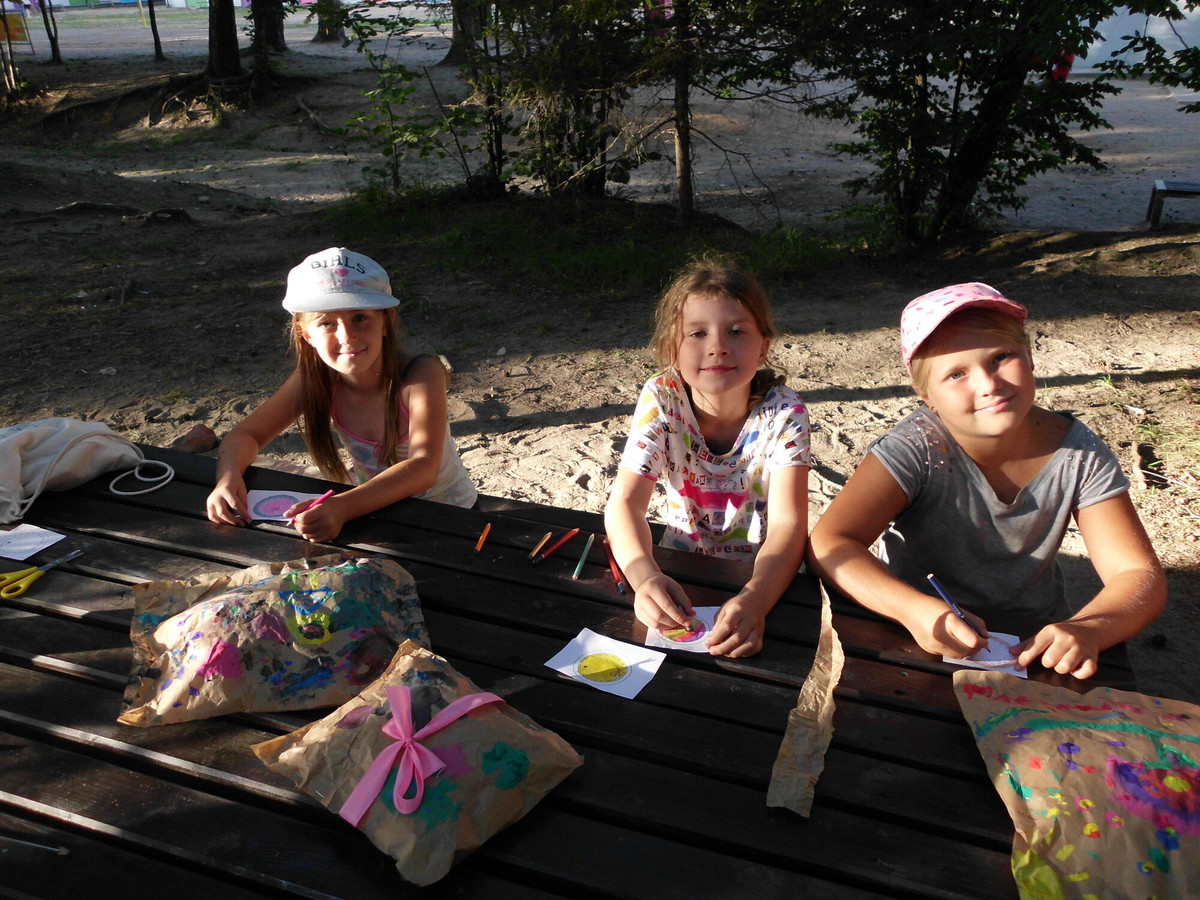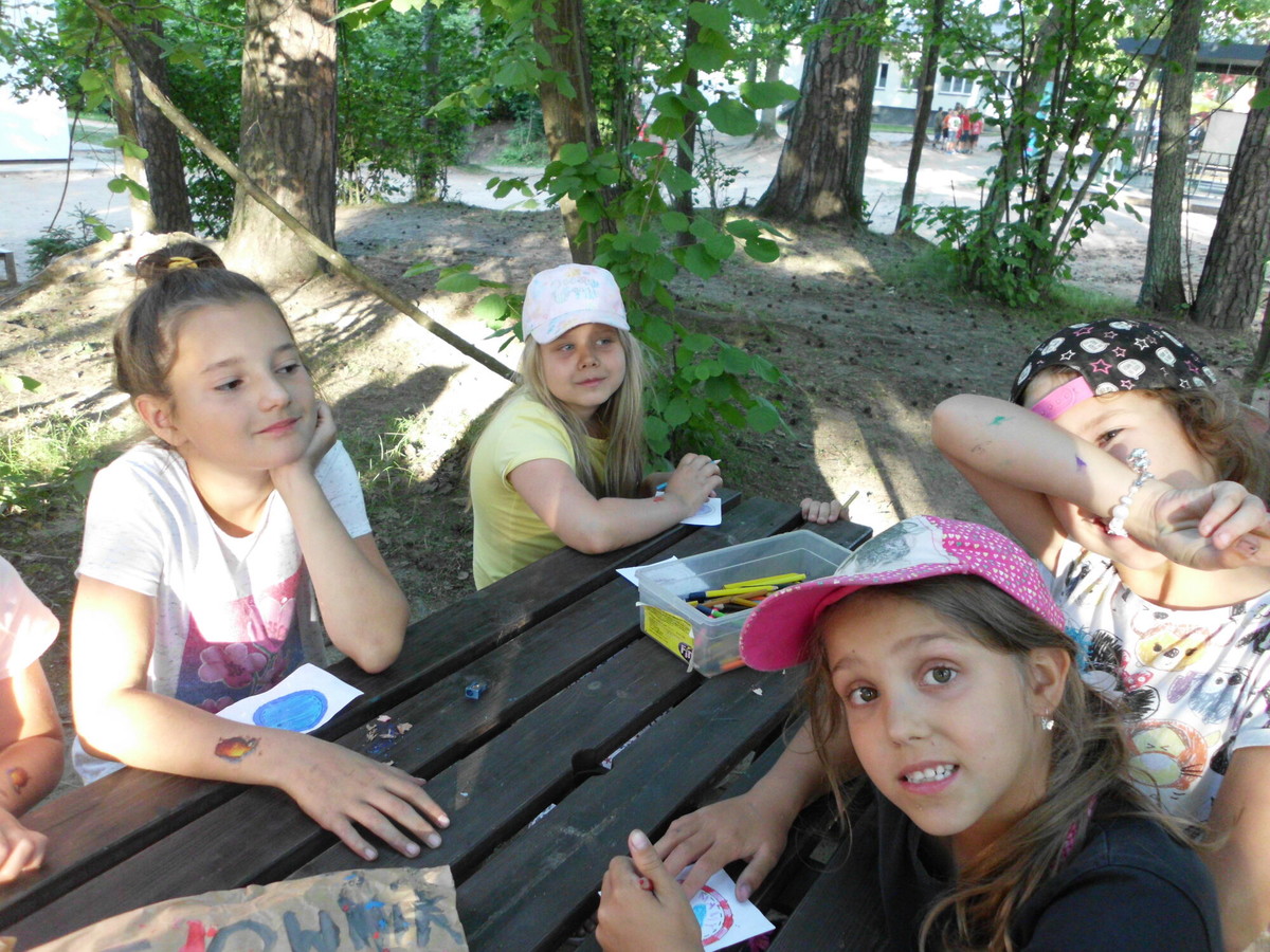 Kolejny dzień zabaw na Kulce zaczęliśmy od wyprawy do lasu, gdzie uczyliśmy się survivalu - przetrwania w trudnych warunkach. Następnie malowaliśmy na rozłożonych między drzewami foliach. Potem wybraliśmy się na plażę i kąpielisko. Później odbyliśmy trening podniebnych akrobacji skacząc na eurobungee, a nasz dzień zakończyło własnoręczne robienie gniotków.