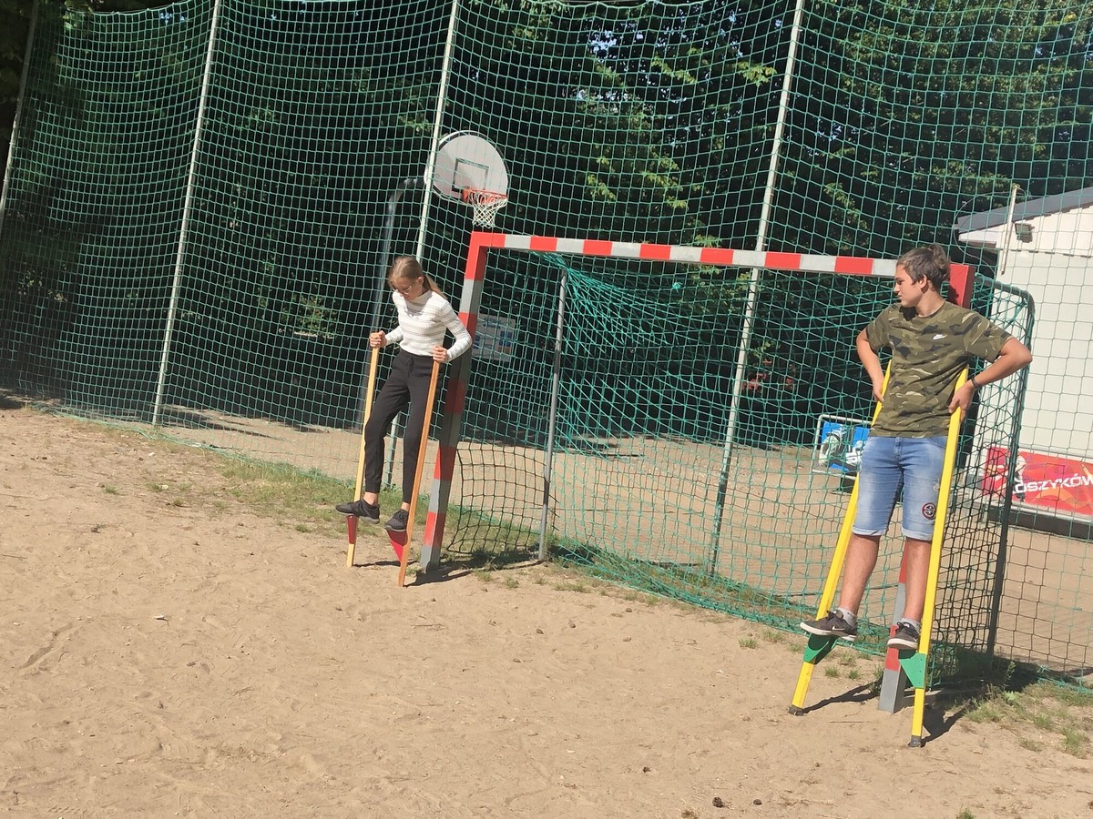 Dzisiaj zaczęliśmy od wspinania się na skrzynki. Następnie przeszliśmy na ściankę wspinaczkową. Kolejną atrakcją były bańki mydlane XXL. Każdy z nas mógł spróbować swoich sił. Potem na boisku zagraliśmy w passball. Na koniec dnia każdy przejechał się na segwayu.
