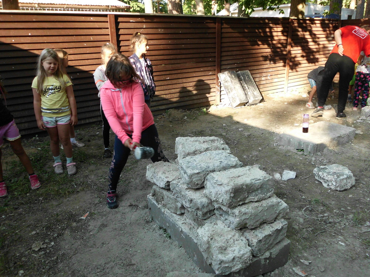 Dzisiejszy poranek zaczęliśmy od zburzenia muru, czyli Wielkiej Demolki. Późnej udaliśmy się na aktywną zabawę na eurobungee. Wszyscy się świetnie się bawili. Po tych zajęciach udaliśmy się na naukę jazdy na segwaych. Każdy miał okazję przejażdżki tym niezwykłym pojazdem. Później wyruszyliśmy na wyprawę do lasu. Graliśmy w podchody, podzieleni na dwie drużyny. Po pysznym obiedzie udaliśmy się na wykonywanie puduszaków oraz przypinek, każdy mógł dać upust swojej wyobraźni. Na koniec dnia graliśmy w bambonade.