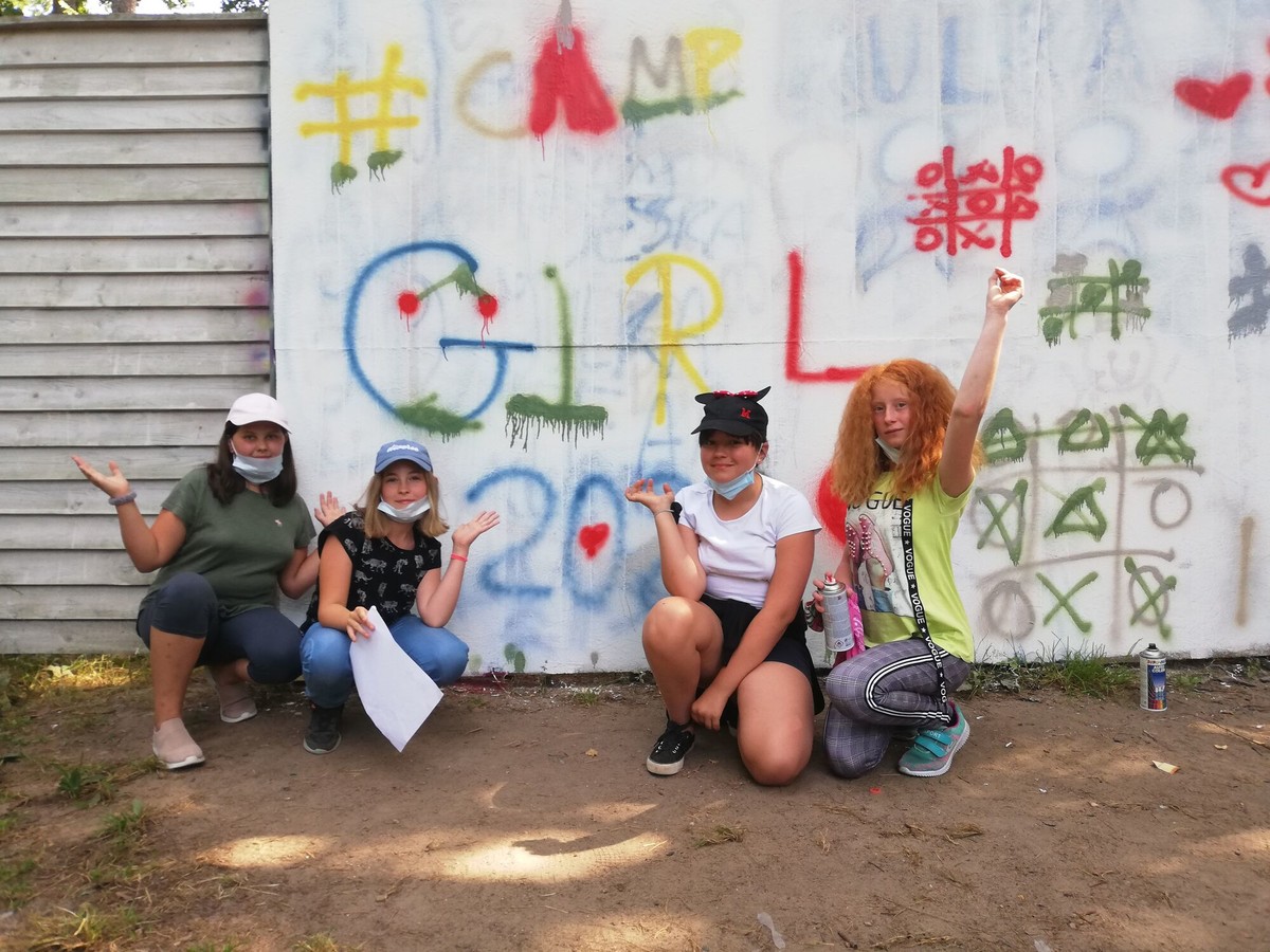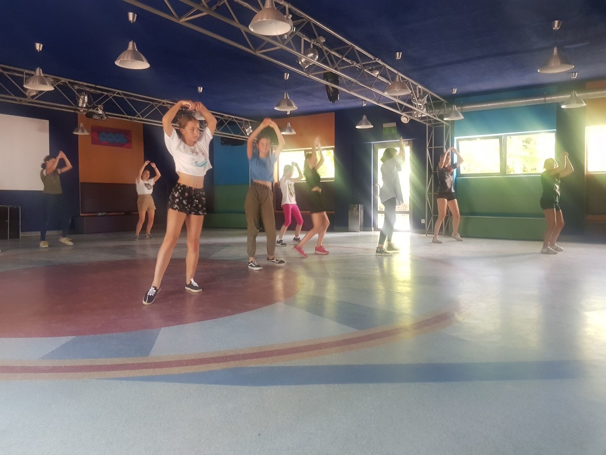 Piąty dzień kolonii rozpoczęłyśmy od warsztatów tanecznych. Wzięłyśmy także udział w warsztatach doskonalenia technik pływackich. Po obiedzie odbyły się zajęcia z survivalu, w czasie których uczyłyśmy się, jak pozyskać ogień i wodę w trudnych warunkach. Miałyśmy także okazję wykonać własne graffiti oraz uczyć się grać na bum bum rurkach.