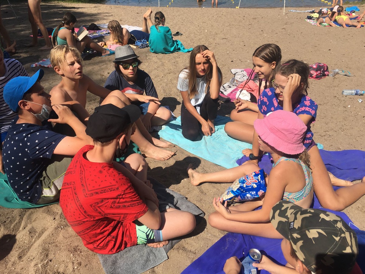 Dzisiejszy dzień zaczęliśmy od wspólnych gier integracyjnych. Podczas gdy część poszła na poligon na zorbę czy quady, reszta zagrała w kalambury odgadując hasła. Następnie zagraliśmy w paparazzi, czyli ćwiczyliśmy swoją szybkość i zwinność łapiąc się wzajemnie za kawałki bibuły. Po szklance orzeźwiającej lemoniady udaliśmy się na plażę korzystać z promieni słonecznych. Po obiedzie udaliśmy się do lasu, by odbyć Bitwę Plemion. Po kolacji zaś zagraliśmy w grę francuska, sprawdzaliśmy wtedy naszą dotychczasową wiedzę. Na koniec zrobiliśmy sobie wspólne ognisko.