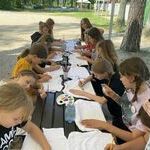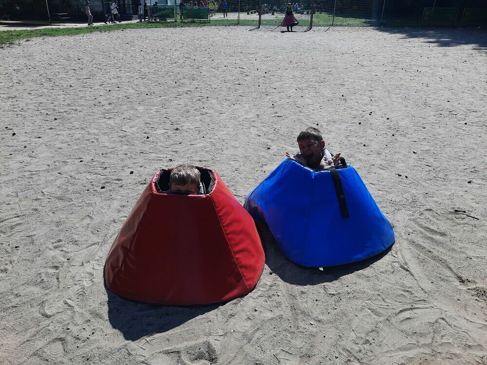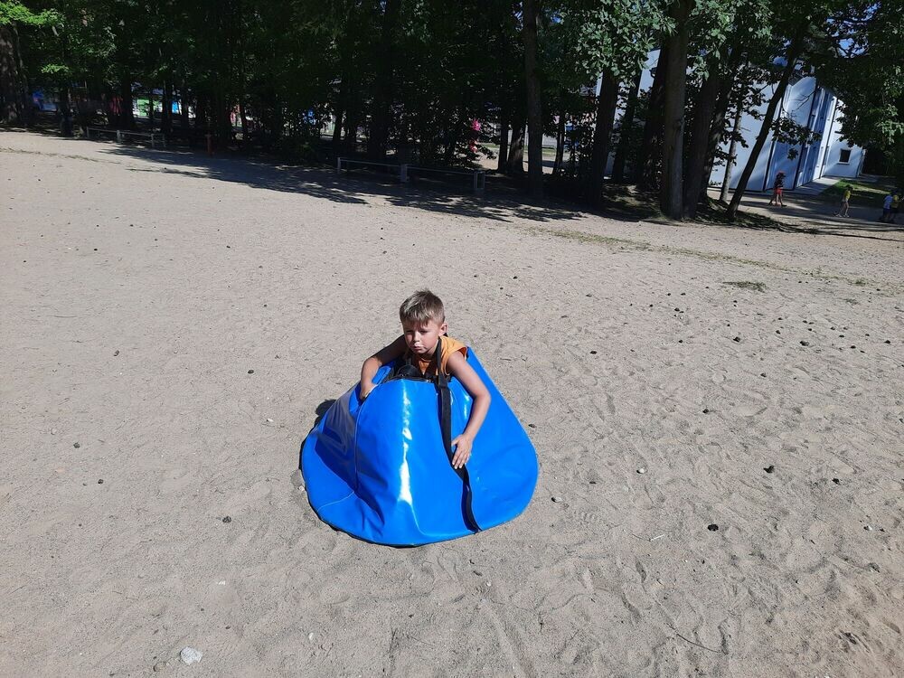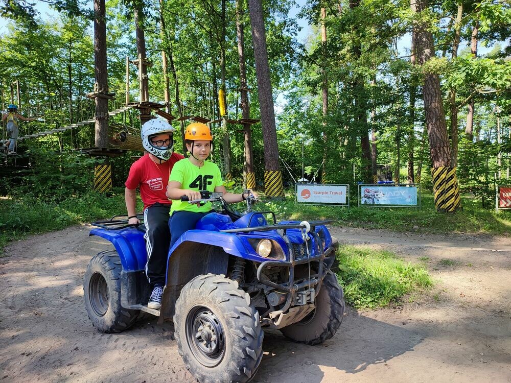 Dziś byliśmy na plaży, kąpaliśmy się w jeziorze, a następnie przeprawiliśmy się przez nie dwuosobowymi kajakami turystycznymi. Po obiedzie graliśmy w mega gry - jengę oraz twistera w rozmiarze XXL. Poznaliśmy także różne gry świata. Na zakończenie dnia jeździliśmy na quadach.