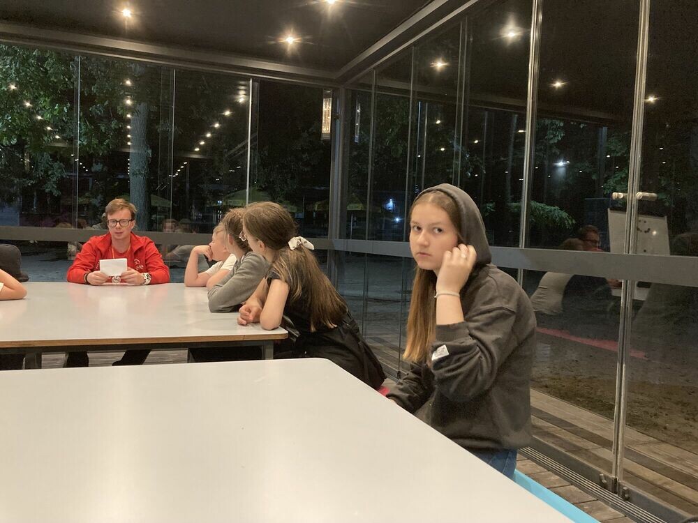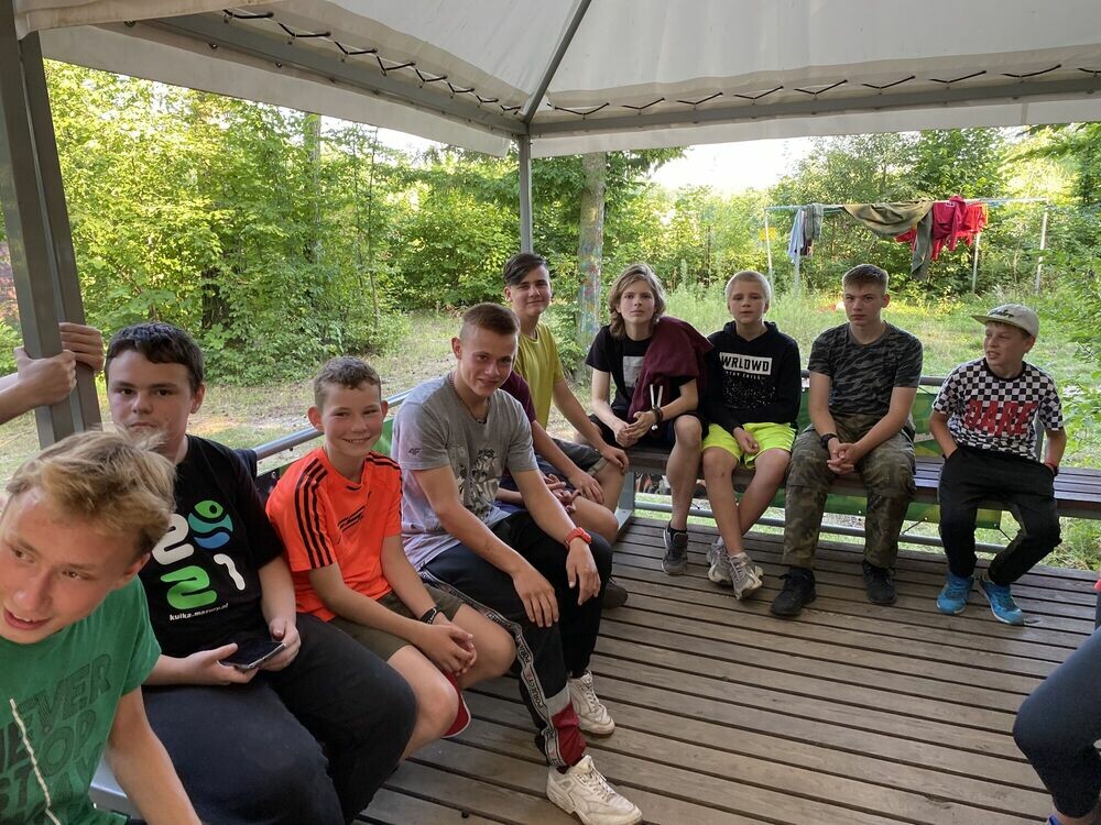 Dzisiejszy dzień zaczęliśmy od wspinania się na skrzynki. Szło nam całkiem dobrze. Miriam weszła na wszystkie dostępne skrzynki, nawet udało jej się zrobić jaskółkę na samym szczycie! Później była gra francuska. Podzieleni na pięć drużyn wykazaliśmy się dużą wiedzą na temat kolonii i ośrodka. Oczywiście znaleźliśmy też trochę czasu na ulubione planszówki. Po obiedzie próbowaliśmy budować tratwę z dętek i pokonać nią pewną odległość na jeziorze. Wieczorem poszliśmy kolejny raz podziwiać zachód słońca, porobiliśmy sobie pamiątkowe zdjęcia, którymi już się powymienialiśmy. Będziemy to miło wspominać!