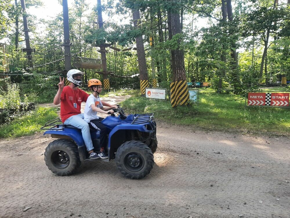 Dzisiejszy dzień nie mógł obejść się bez plażowania. Po relaksie na plaży udaliśmy się na walki gladiatorów. Pierwszy raz w życiu poczuliśmy się jak prawdziwi wojownicy. Tytuł wojownika otrzymali Oskar oraz Franek, którzy wygrali pojedynek. Kto czytał wcześniejsze relacje, ten wie, że quady nie są nam już obce. Dzisiaj odbyły się kolejne zajęcia na quadach, gdzie mogliśmy doszkolić swoją jazdę. Chętnie codziennie w wolnej chwili bierzemy piłkę i aktywnie spędzamy czas. Tym razem był to korfball, czyli koszykówka, lecz nieco inna niż każdy z was zna. Wieczorem wybraliśmy się na plac naszego ośrodka i integrowaliśmy się grając w różne gry.