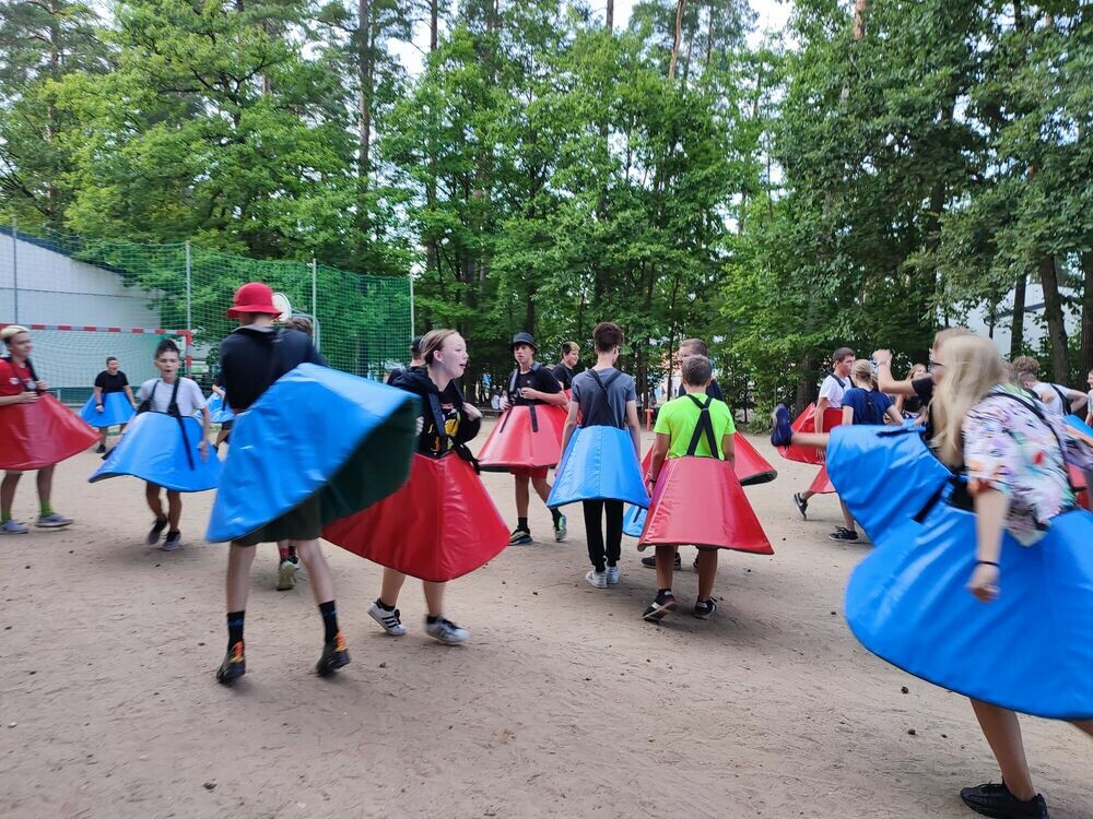 Dzisiejszy dzień zaczęliśmy od Archery Challenge, czyli budowaniu bunkrów i strzelania z łuków. Następnie doszkalając swą celność udaliśmy się na łuki. Przeszliśmy dwa poziomy parku linowego, który okazał się nie lada wyzwaniem. Po południu korzystając z pięknej pogody udaliśmy się na plażowanie i kąpiele przy ośrodkowym jeziorze oraz spróbowaliśmy zagrać w passball, czyli piłkę nożną w dziwnych strojach. To był świetny dzień i niecierpliwie czekamy na jutrzejsze atrakcje!