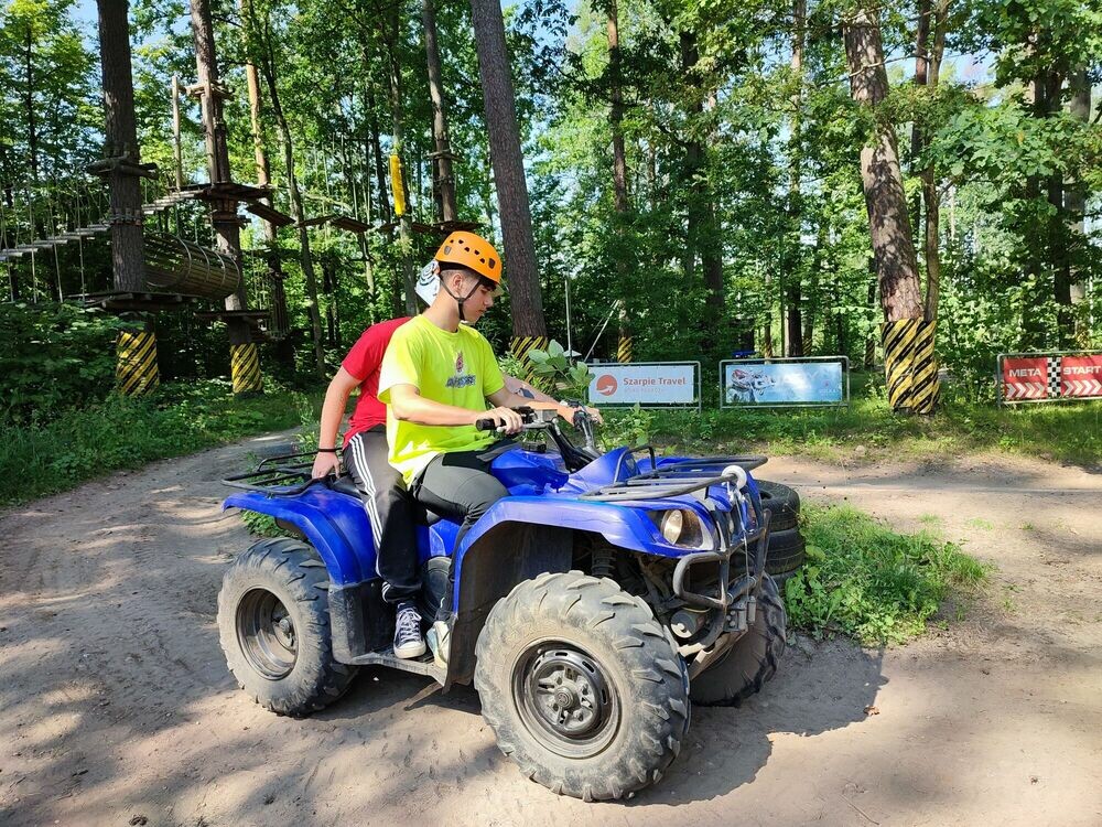 Dzisiejszy dzień rozpoczęliśmy spokojnie. Zagraliśmy w wilka, pasterza i owce. Ćwiczyliśmy dzięki temu naszą pokerową twarz oraz spostrzegawczość. Pasterzom udało się za każdym razem! Część z nas wtedy wybrała się na fakultety, jeździła na quadzie oraz segwayach. Później całą grupą wybraliśmy się na quady, jeździliśmy nimi po wyznaczonym torze. Później wspinaliśmy się na cztery ścianki wspinaczkowe o różnych poziomach trudności. W trakcie przerwy obiadowej zmagaliśmy się w turnieju siatkówki. Mamy drugie miejsce! Po obiedzie zaś wybraliśmy się na plażę, żeby odpocząć oraz wykąpać się w jeziorze. Po kolacji stoczyliśmy bitwę przeciwko sobie podczas Archery Challenge, czyli pojedynku łuczników.
