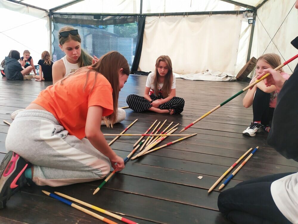 Dziś z samego rana w Kulce przywitało nas piękne słoneczko. Po śniadaniu śpiewająco udaliśmy się na karaoke, czyli warsztaty ze śpiewu z Melpomeną. Zaśpiewaliśmy kilka różnych piosenek. Następnie udaliśmy się na zajęcia z survivalu, podczas których poznaliśmy rodzaje stosów ogniskowych oraz nauczyliśmy się jak posługiwać się krzesiwem. Dodatkowo poznaliśmy znaczenie wody. Potem odbyły się warsztaty tańca z Terpsychorą, muzą tańca, z którą poznaliśmy podstawowe układy taneczne. Po obiedzie rozegraliśmy mecz siatkówki na boisku. Po kolacji zagraliśmy w mafię, w uno i w ziemniaka. Późnym wieczorem była gra terenowa, czyli Labirynt Dedala, na który czekaliśmy i przygotowywaliśmy się od dawna.