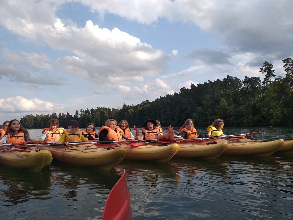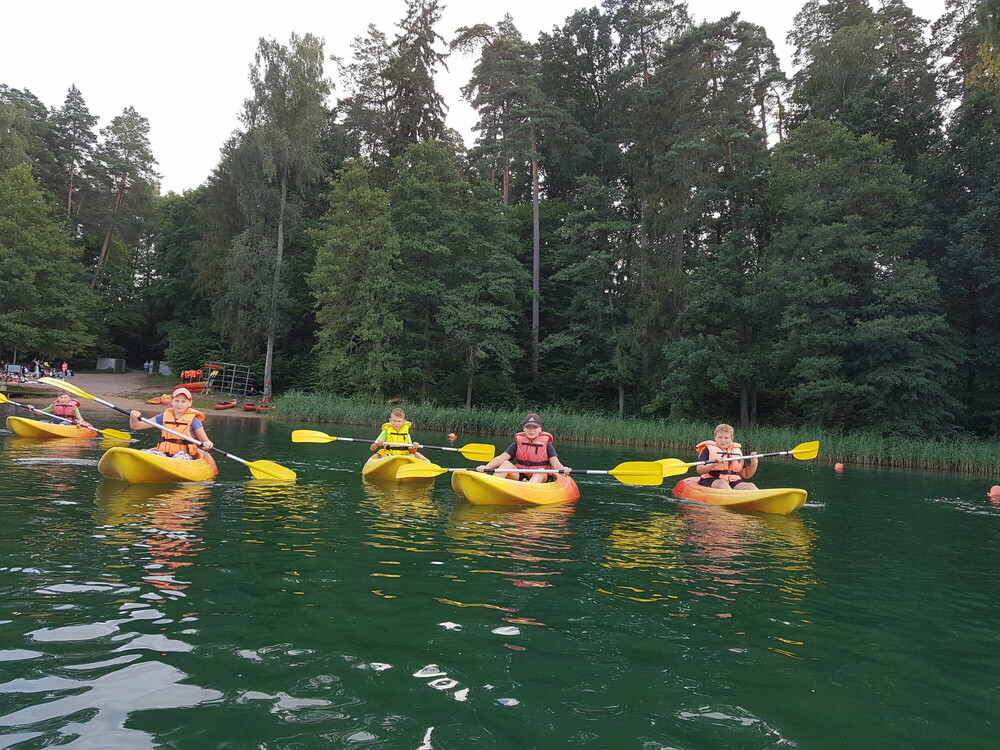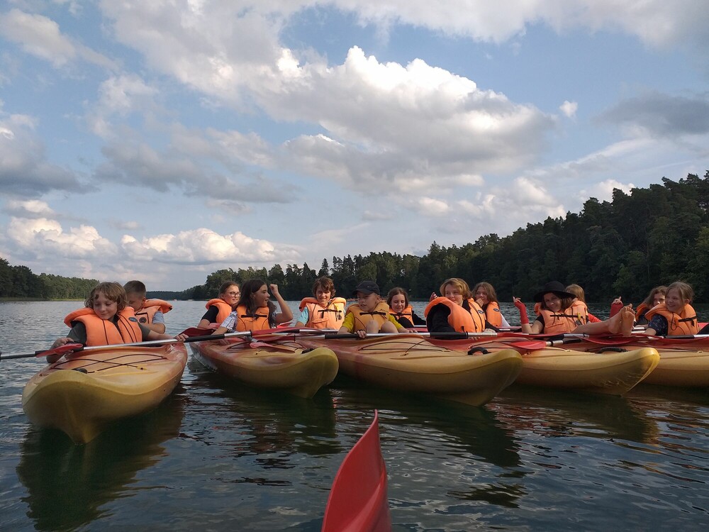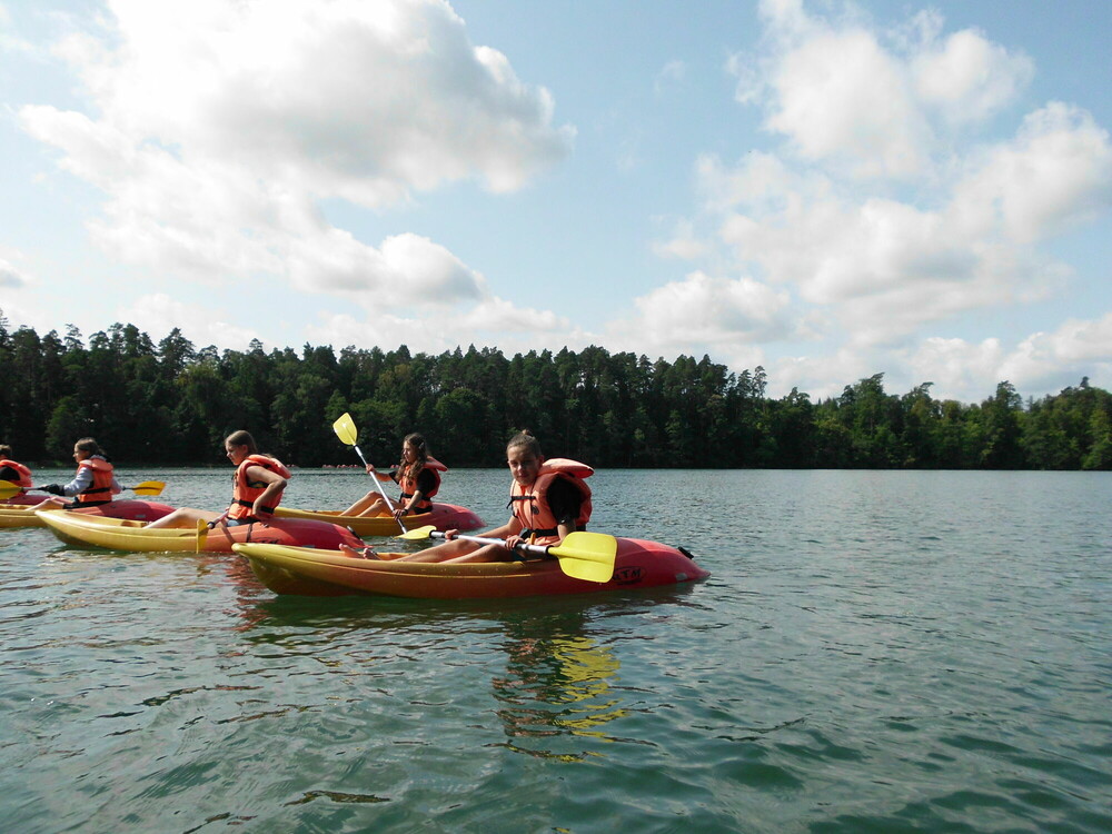 Kajaki z samego rana to dobra rozgrzewka przed kolejnym aktywnym dniem. Trening rąk, który zrobiliśmy pływając kajakami jednoosobowymi, bardzo nam się przydał w grach z różnych krajów świata. Rywalizowaliśmy między sobą w trzech różnych grach. Tym razem grupa chłopców okazała się lepsza, ale dziewczyny nie poddadzą się w następnym konkurencjach. Trzecią atrakcją tego dnia była jazda quadem. Poznaliśmy jego budowę oraz sprawdziliśmy swoich sił na torze. Przejażdżka quadem szybko się skończyła, więc z niecierpliwością czekamy na kolejny raz, który odbędzie się na poligonie. Drugą część dnia rozpoczęliśmy od karaoke. Nie jesteśmy może profesjonalnymi piosenkarzami, ale śpiewanie wychodziło nam całkiem dobrze. Do aktywnych zajęć zaliczamy również przejście parku linowego z bardzo ciekawymi przeszkodami. W rytm muzyki przeszliśmy dwa tory o różnych poziomach trudności. Wieczór nastał bardzo szybko, a dzień zakończyliśmy artystycznymi zajęciami. Lepienie z gliny różnych figur sprawiło nam wiele radości. Do zobaczenia jutro!