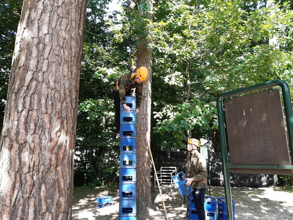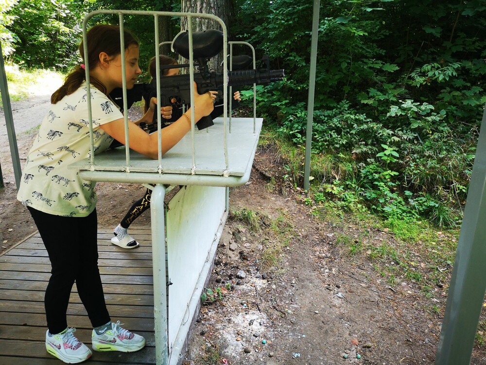 Po porannej zaprawie na podobozie naszywaliśmy na pagonach naszych bluz różne stopnie i wzorki. Następnie udaliśmy się̨ na tor quadowy, gdzie poznaliśmy budowę̨ quadu, po czym próbowaliśmy swoich sił w jeździe po torze. Nikt nie miał żadnych trudności z jego pokonaniem. Znaleźliśmy też chwilę czasu, by udać się̨ na plażę i zażyć kąpieli w jeziorze. Dużo frajdy mieliśmy na dynamicznym treningu snajperskim, który odbył się na polu paintballowym. Wieczorem ubrani w specjalną uprząż układaliśmy wieżę ze skrzynek jednocześnie sie na nią wspinając. Najwyżej udało się̨ wejść Krzysiowi, który wszedł na wszystkie skrzynki!