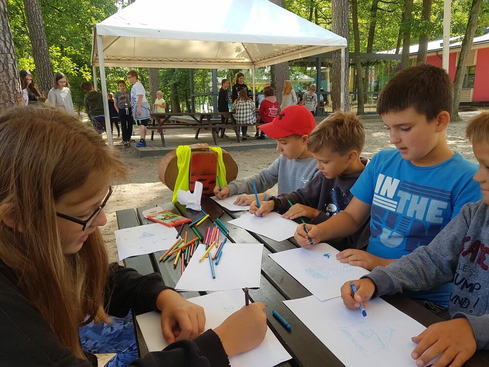 Dziś, zaraz po śniadaniu, strzelaliśmy z wiatrówek do tarcz. Wszyscy bardzo dobrze sobie poradzili. Następnie na zajęciach plastycznych z wychowawcą wykonaliśmy pracę techniką quillingu. Po nich graliśmy w pif paf. Kolejną atrakcją była Bitwa Plemion, która odbyła się w pobliskim lesie. Zwyciężyła grupa o nazwie Mona Lisa. Po południu poszliśmy na plażę, gdzie mogliśmy wykąpać się w jeziorze. Po powrocie wzięliśmy udział w grach i zabawach integracyjnych. Dzień zakończyliśmy dyskoteką.