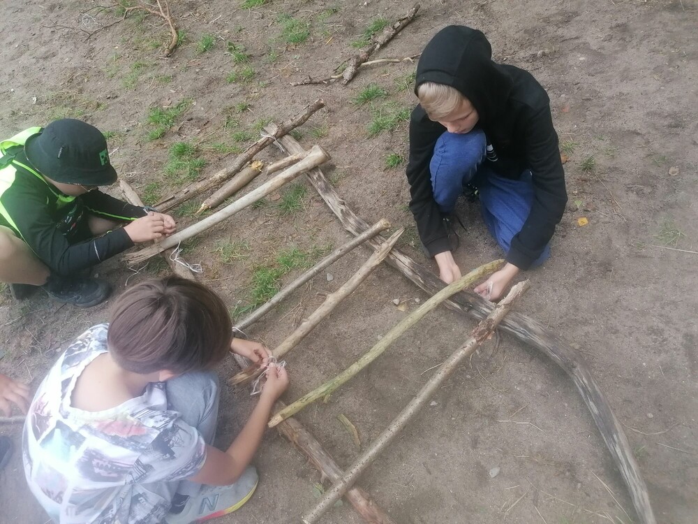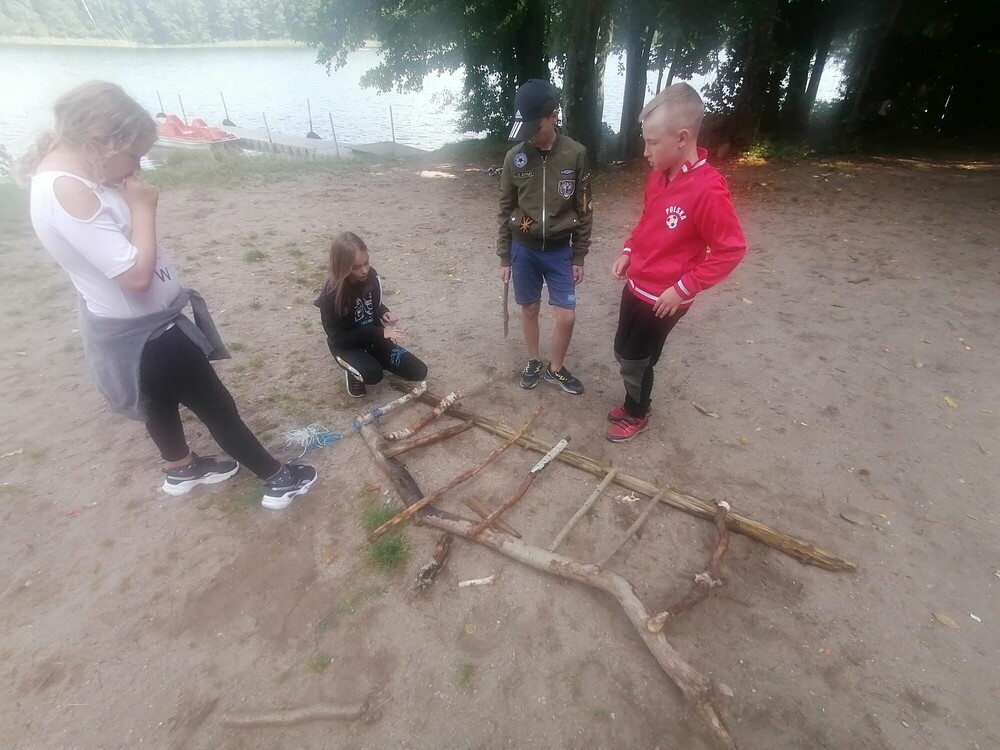 Aktywnie rozpoczęliśmy dzień i po rozgrzewce rzucaliśmy wspólnie frisbee. Następnie nauczyliśmy się podstaw udzielania pierwszej pomocy i sprawdziliśmy swoją wiedzę podczas gry, w czasie której budowaliśmy nosze. Wiele radości dostarczyły nam mega gry: układaliśmy jengę w rozmiarze XXL i zagraliśmy w twistera. Stoczyliśmy Bitwę Plemion. Wieczór spędziliśmy bawiąc się świetnie na ognisku.