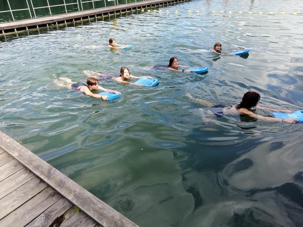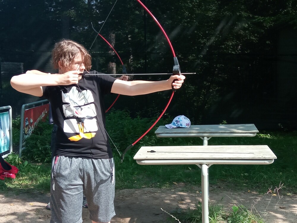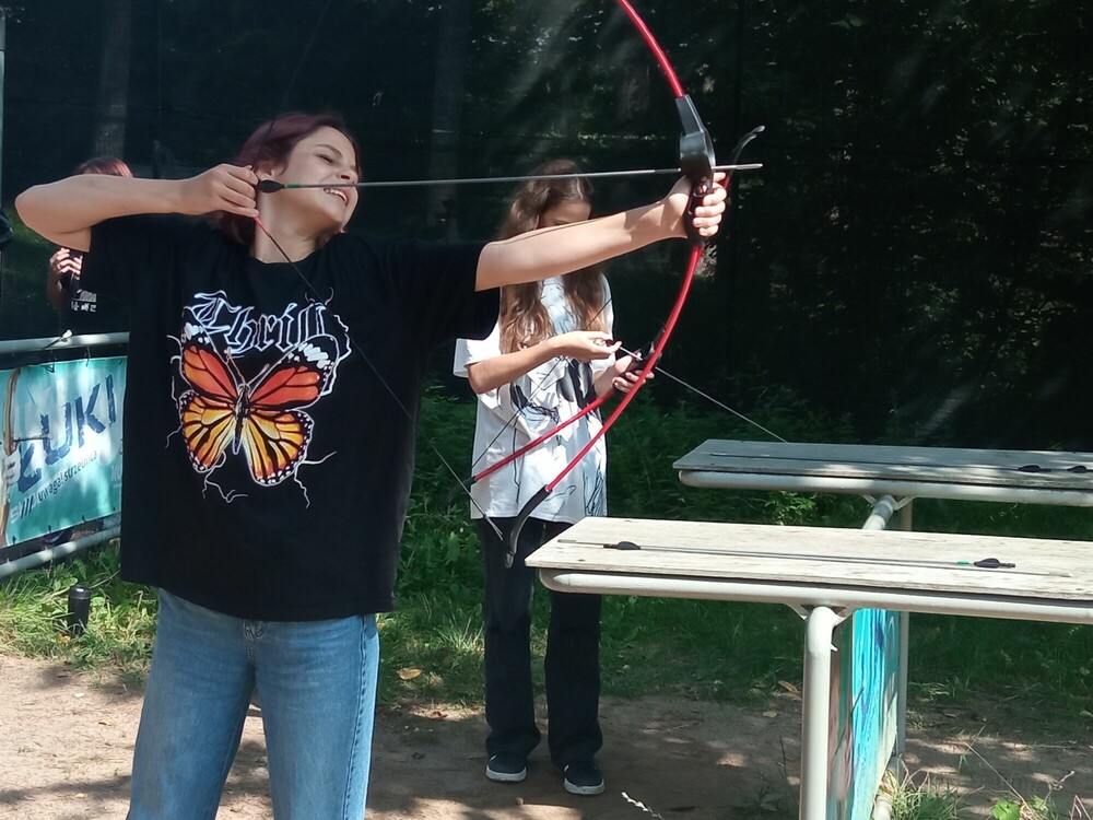 Dzisiejszy dzień zaczęliśmy od gry terenowej Urodziny Kubusia Puchatka. Potem mieliśmy zajęcia artystyczne – malowanie w chmurach. Następnie poszliśmy na Archery Soft, gdzie strzelaliśmy z łuków do tarcz. Po obiedzie mogliśmy udoskonalić swoje techniki pływackie na zajęciach z ratownikiem. Potem wybraliśmy się na ściankę wspinaczkową. Dzień zakończyliśmy budowaniem muru z betonowych bloczków.