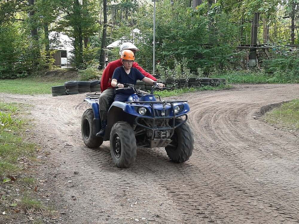 Dzień rozpoczęliśmy od zajęć z budowania wieży ze skrzynek i wspinania się na nie, co okazało się dość proste. Później wybraliśmy się na plażę, gdzie relaksowaliśmy się opalając oraz kapiąc się w jeziorze. Po obiedzie sprawdziliśmy nasze umiejętności strzeleckie używając wiatrówek. Przed kolacją zdążyliśmy jeszcze przejechać się quadem po specjalnie przygotowanym torze.