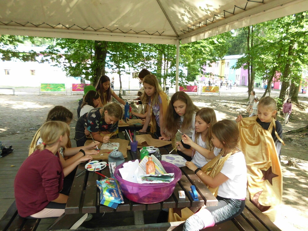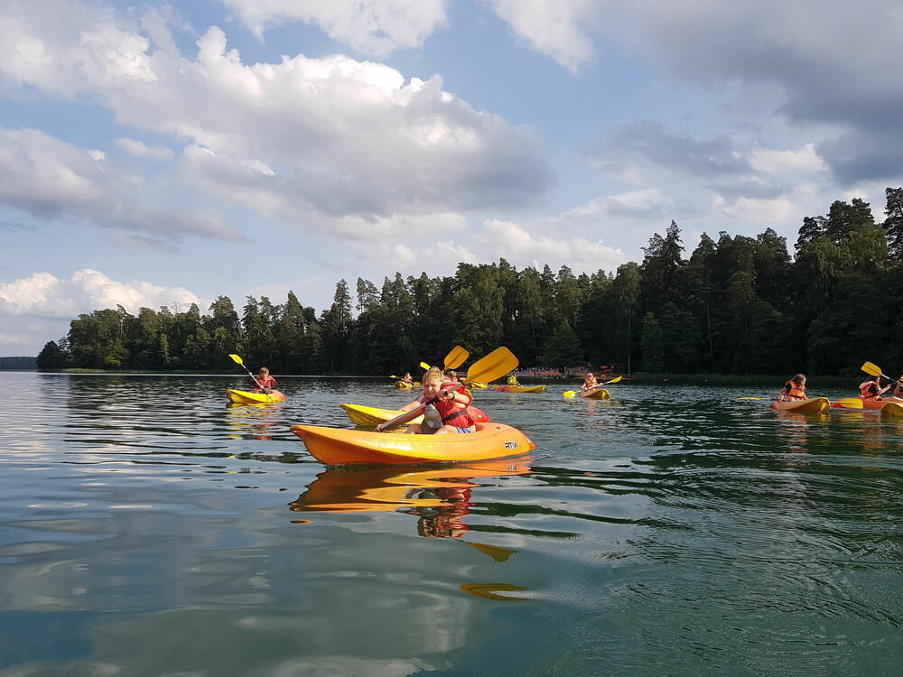 Dzisiejszy dzień zaczęliśmy od gry Bitwa Plemion. Naszym zadaniem było podzielenie się na drużyny, stworzenie flagi, a następnie pilnowanie, aby przeciwnicy jej nam nie odebrali. Później tworzyliśmy bańki mydlane XXL, co było świetną zabawą. Korzystając z pięknej pogody udaliśmy się na kajaki, a następnie zostaliśmy na plaży, by wejść do wody oraz złapać trochę promyków słońca. Na zakończenie dnia czekały na nas gry i zabawy, po których udaliśmy się na dyskotekę. Czekamy niecierpliwie na kolejne przygody!