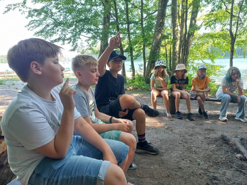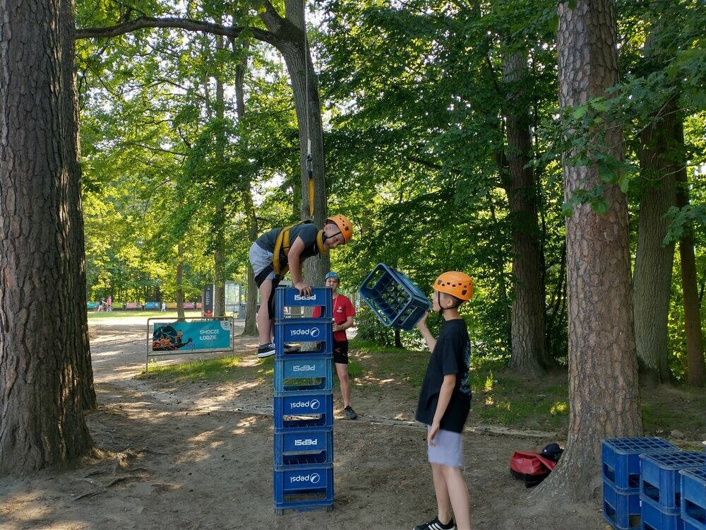W porannym bloku zajęć mieliśmy szansę wyszaleć się na eurobungee oraz przejść kilka torów o zróżnicowanym poziomie trudności na parku linowym. Po pysznym obiedzie i odpoczynku poszliśmy na plażę, która znajduje się na terenie naszego ośrodka i pod nadzorem ratownika skorzystaliśmy z kąpieli w jeziorze. Następnie wzięliśmy udział w zajęciach Archery Soft, podczas których podzieliliśmy się na dwa zespoły i strzelaliśmy z łuku do tarczy. Ale to nie koniec atrakcji, gdyż na koniec dnia odbyło się ognisko z pieczeniem kiełbasek oraz różnymi grami, które jeszcze bardziej pogłębiły nasze więzi. Było super i nie możemy doczekać się już następnego dnia.