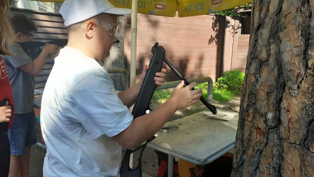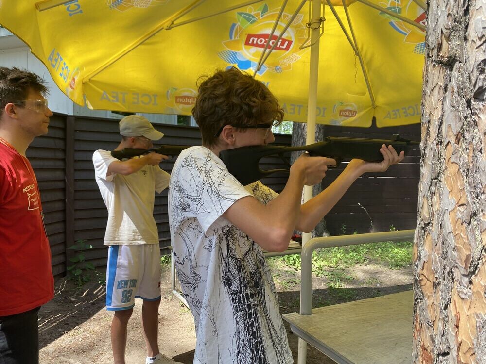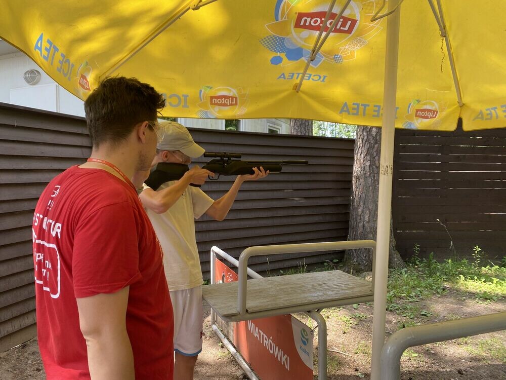 Pełni pozytywnej energii wstaliśmy wraz z pierwszymi promieniami słońca i rozpoczęliśmy dzień wspólną rozgrzewką. W ciągu dnia skupiliśmy się na tym, by doskonalić nasze umiejętności strzeleckie, zarówno z wiatrówki, jak i markerów do paintballu. Z pewnością przydadzą nam się w najbliższych dniach. Nie zabrakło również ciekawych wyzwań w postaci wspinaczki na wieżę ze skrzynek i oczywiście kąpieli w jeziorze. Całość zakończyliśmy integracją przy ognisku, podczas którego piekliśmy soczyste kiełbaski, bawiliśmy się i śpiewaliśmy. Pierwszy dzień zajęć spędziliśmy najintensywniej jak potrafimy, a później będziemy już tylko przyspieszać.