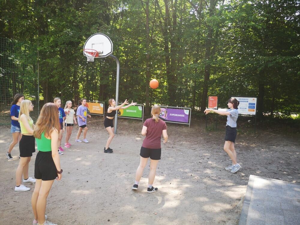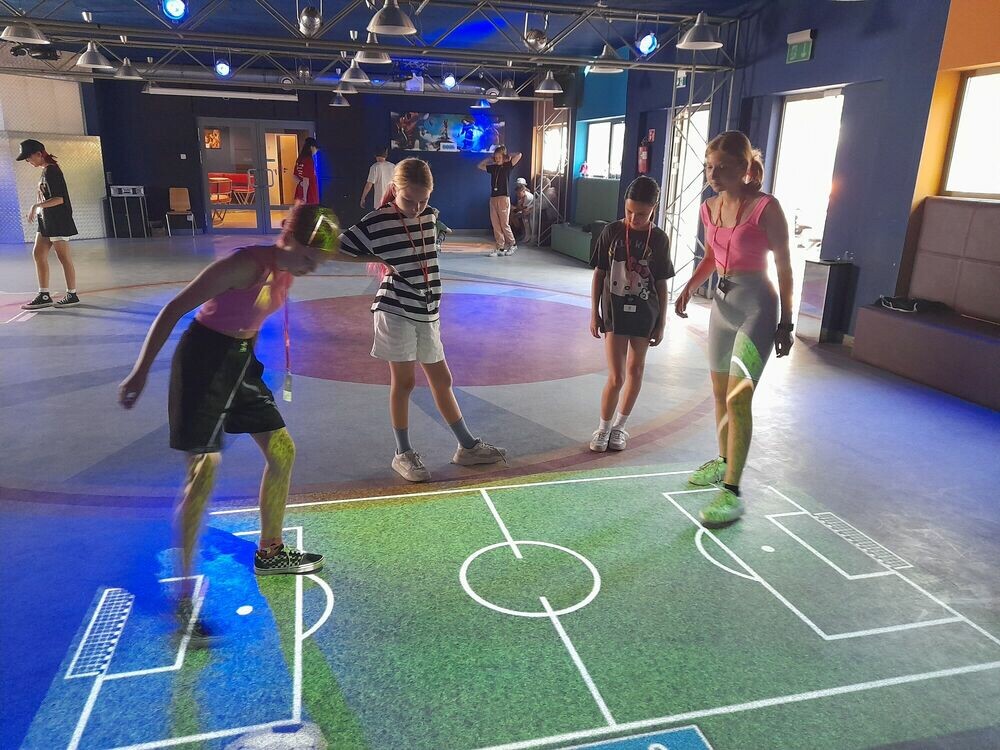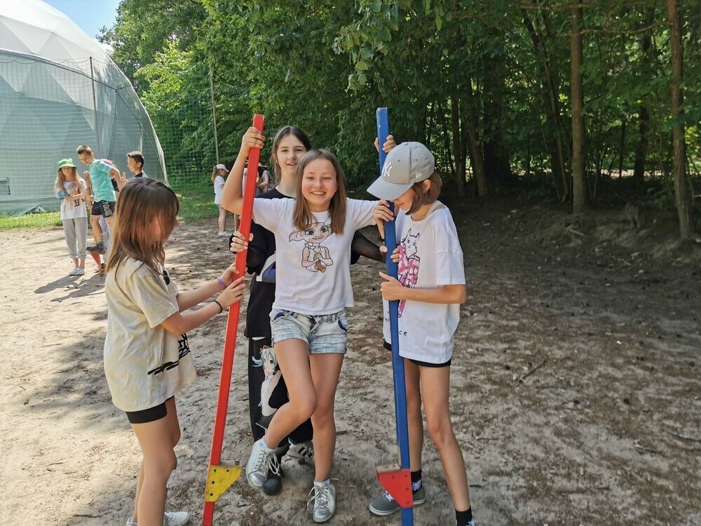 Dzień zaczęliśmy od wycieczki rowerkami wodnymi po jeziorze Łęsk. Następnie spotkaliśmy się z panią pielęgniarka, żeby zapoznać się z podstawowymi zasadami bezpieczeństwa zdrowotnego oraz zostaliśmy zapoznani z ofertą zajęć fakultatywnych. Spędziliśmy miły czas na plaży, a później zagraliśmy w piłkę na opak – korfball (inna forma koszykówki) i passball (piłka nożna w specjalnych strojach). Mieliśmy także okazję biegać po wodzie! Odbyło się to w specjalnych kulach, które to umożliwiały. Sprawdziliśmy również swoje możliwości na ściance wspinaczkowej, a później przygotowywaliśmy się do lotu w kosmos za pomocą żyroskopu. Obracał on nas we wszystkie możliwe strony! To był naprawdę super dzień.