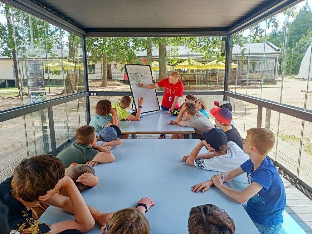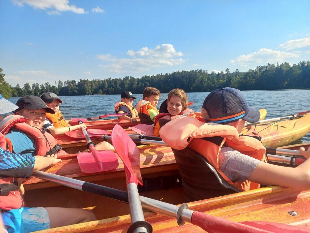 Dzisiaj poznaliśmy techniki pierwszej pomocy, a potem zdobyte informacje wykorzystaliśmy w grze terenowej Ranny Lotnik. Dzięki nowoczesnej technologii wirtualnych dywanów mogliśmy grać w różne gry i zabawy. Dodatkowo plażowaliśmy. Poznaliśmy panią pielęgniarkę oraz dodatkowe możliwości programowe. Po obiedzie udaliśmy się na fantastyczną wyprawę kajakami na jezioro Łęsk, a później wykazaliśmy się na strzelnicy paintballowej. Wieczorem zamieniliśmy się w konstruktorów budujących rozmaite budowle.