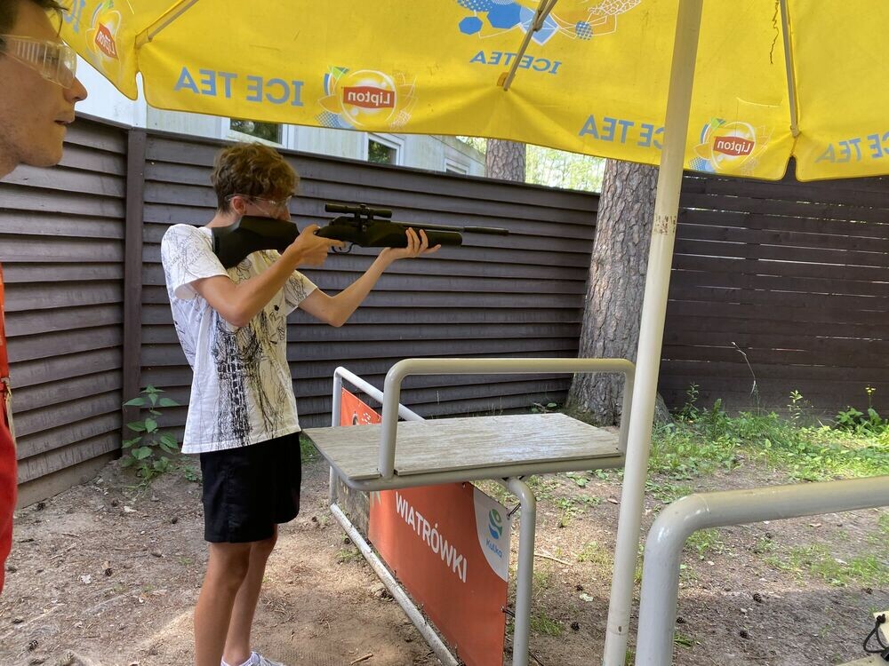 Dzisiaj zaczęliśmy intensywnie korzystać z atrakcji programowych. Wszyscy uczyliśmy się strzelać z wiatrówek sprężynowych i wiatrówek PCP. Następnie odbyły się zawody strzeleckie. Każdy z nas dał z siebie wszystko! Po obiedzie wszyscy udaliśmy się na plażowanie i kąpiele, po których razem z ratownikiem wypłynęłyśmy rowerkami wodnymi na jezioro Łęsk. Dzięki przepięknej pogodzie nasza wyprawa była bardzo przyjemna i długo pozostanie w naszej pamięci. Wieczorem wszyscy graliśmy w gry i integrowaliśmy się o zachodzie słońca.