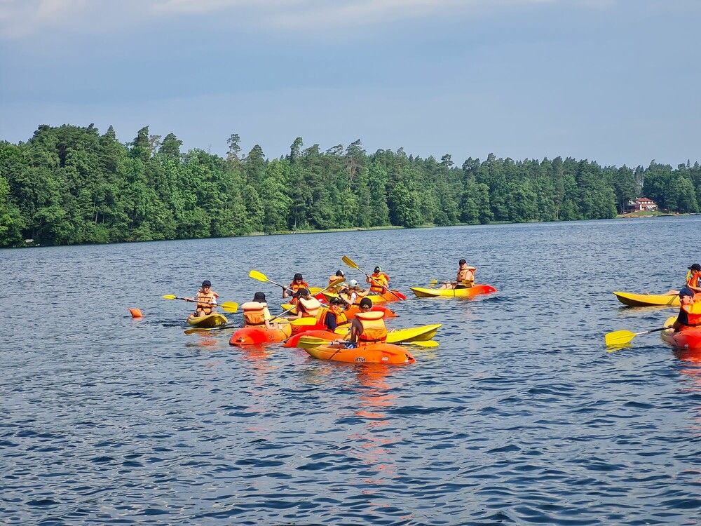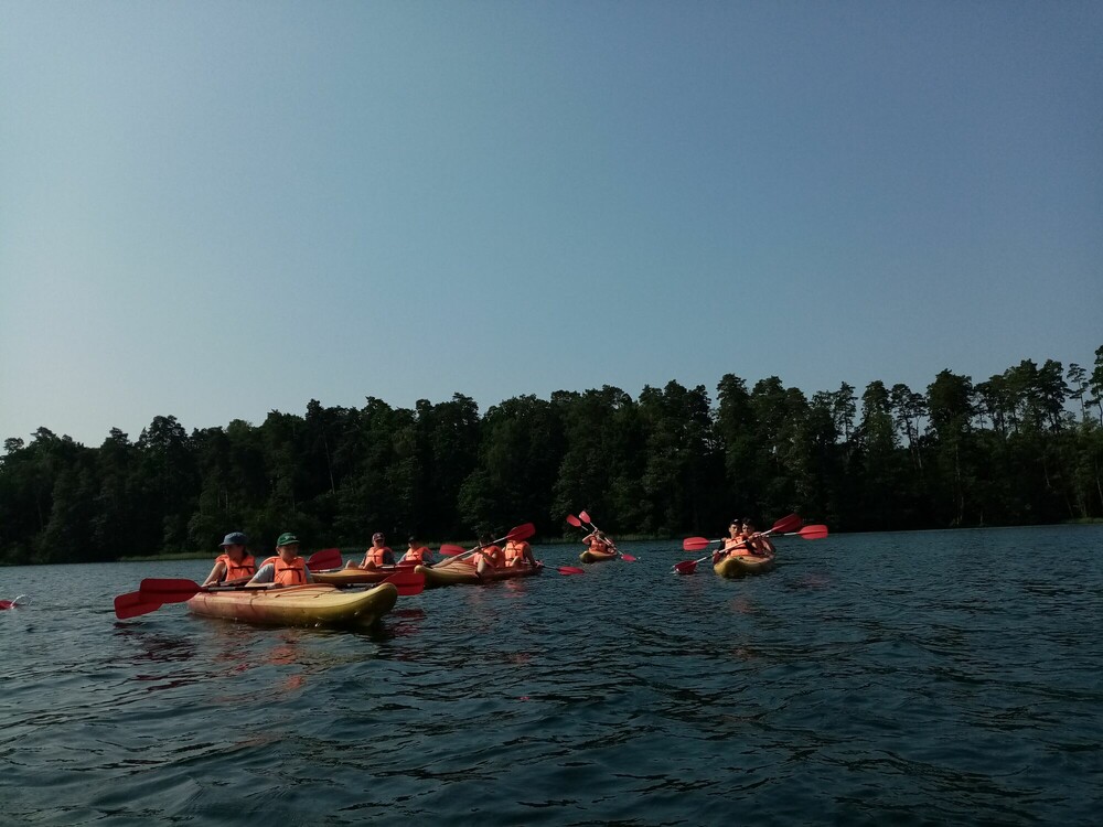 Kajaki turystyczne z rana zaraz po śniadaniu to sama przyjemność! Lekki chłodzący wiaterek i słońce towarzyszyły nam przez całą wyprawę. Po kajakach wysuszyliśmy się i wzięliśmy udział w zajęciach integracyjnych akcja integracja. Przed obiadem przyszedł czas na długo wyczekiwany paintball. Świetnie się bawiliśmy podczas meczu. Mieliśmy również okazje podziwiać dziś utalentowanych kolegów na Talent Show. Po kolacji podzieliliśmy się na grupki i graliśmy w gry planszowe.