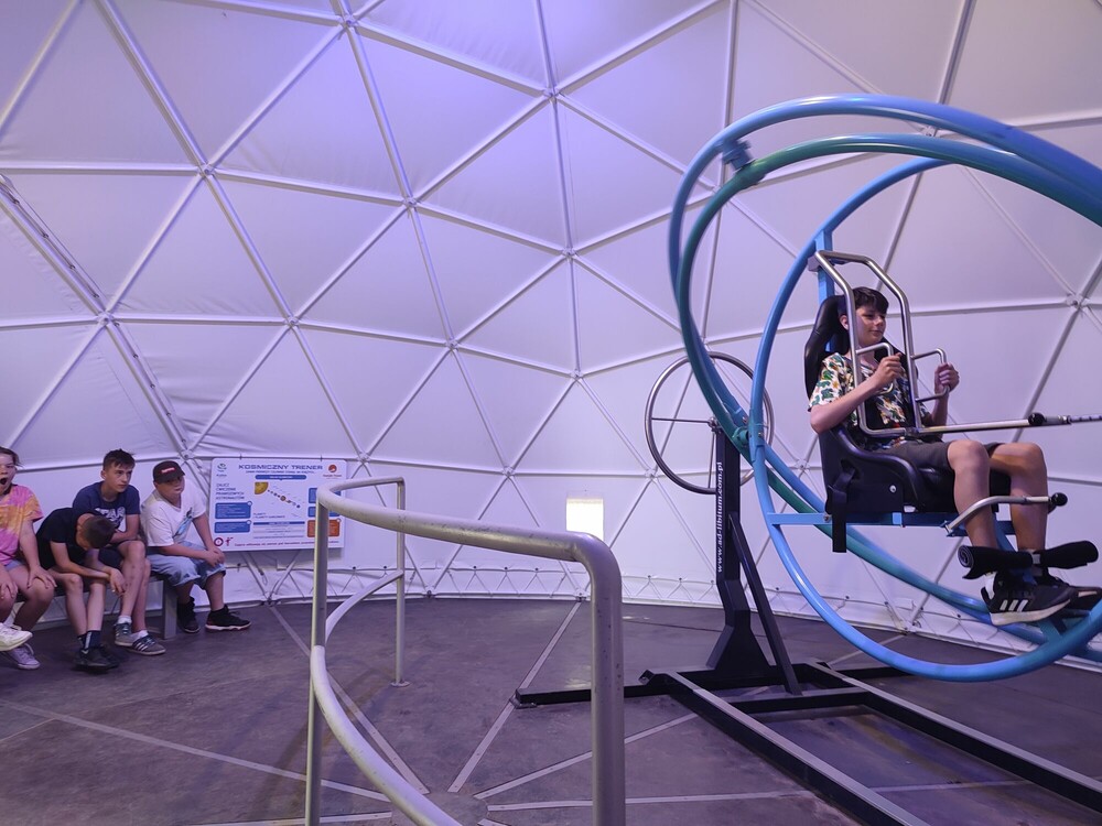 Kolejny dzień powitał nas przepięknym słońcem. Po śniadaniu wybraliśmy się na kajaki i podziwialiśmy mazurską przyrodę otaczającą jezioro. Po wodnych atrakcjach skakaliśmy na eurobungee, czyli na trampolinie. Potem przyszedł czas na drugie śniadanie. Po posiłku rywalizowaliśmy w walkach sumo w zabawnych i bezpiecznych strojach. Przed kolacją poszliśmy pokibicować innym grupom na naszym kulkowym Talent Show. Następnie przyszedł czas na przekroczenie ogrodzenia terenu tajnej bazy. Weszliśmy do kokpitu spodka, oglądaliśmy film o historii Kosmicznych Mazur oraz przetestowaliśmy urządzenia kosmitów w laboratorium.