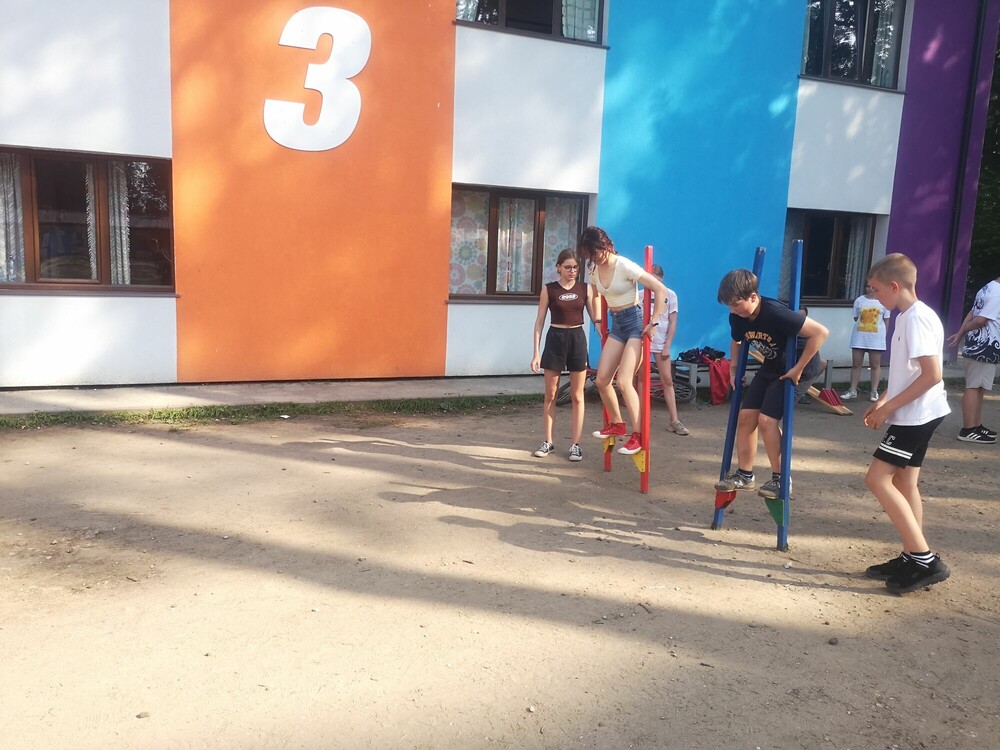 Piątek, pierwszy dzień lipca, zaczęliśmy spokojnie. Poszliśmy na śniadanie, później zrealizowaliśmy nasze pakiety aktywne - różnego rodzaju dodatkowe aktywności na terenie ośrodka. Później rozegraliśmy szybki mecz waterpolo. Jeszcze przed obiadem nasza drużyna piłkarska wygrała mecz rozegrany z inną kolonijną grupą. Zjedliśmy obiad, chwilę odpoczęliśmy i poszliśmy znów na plażę. Graliśmy w gry, a także ochłodziliśmy się w jeziorze. Następnie oglądaliśmy pokaz talentów naszych kolegów i koleżanek z kolonii. Dzień zakończyliśmy zajęciami Ale Cyrk! Chodziliśmy na szczudłach, jeździliśmy dziwnym rowerem. Śmiechu było przy tym, co niemiara.