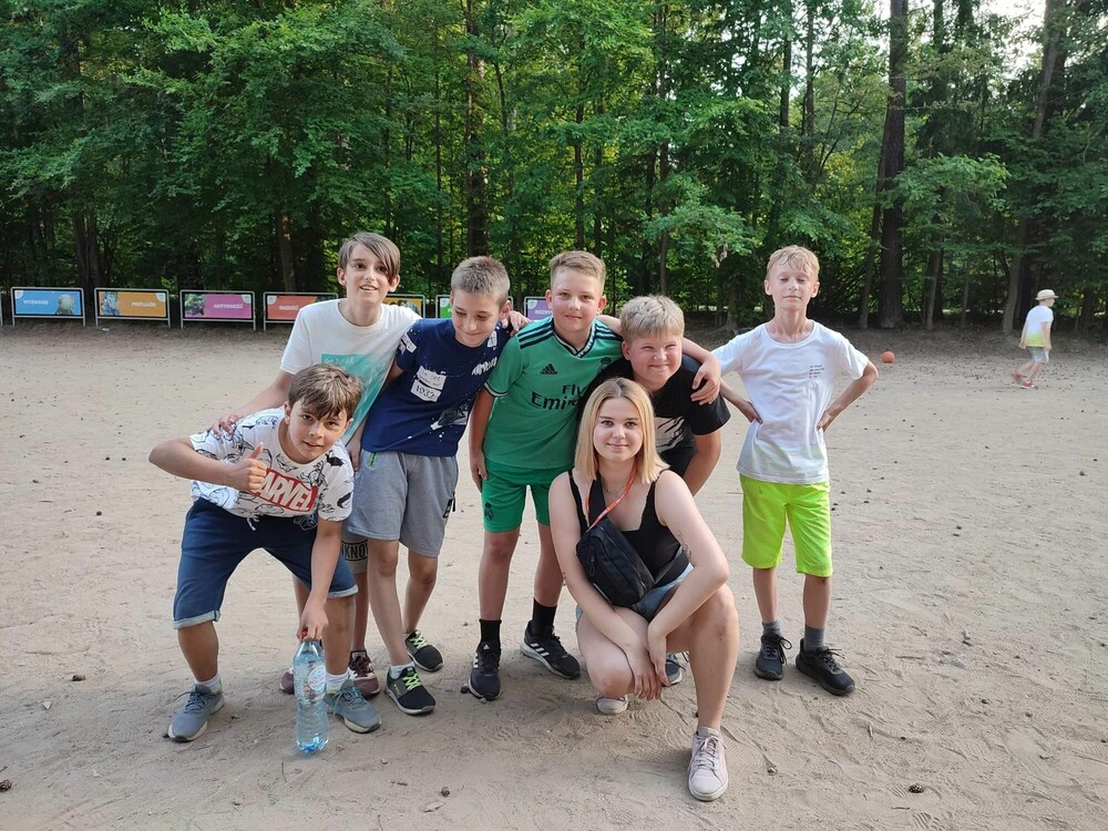 Nasz dzień dla większości zaczął się spokojnie. Część z nas po posprzątaniu pokoju zagrała w kalambury i planszówki. Część z nas brała udział w zajęciach fakultatywnych, czyli wyścigach smoczej łodzi na jeziorze Łęsk. Następnie budowaliśmy wieżę ze skrzynek. Niektórym udało się ułożyć wszystkie! Później poszliśmy na plażę, żeby trochę odpocząć, aby po obiedzie móc grać w piłkę ręczną na boisku. Później obejrzeliśmy talenty, jakie nasi koledzy z różnych grup mogli zaprezentować na Talent Show! Po obiedzie zaś zmierzyliśmy się ze sobą podczas walk gladiatorów. Walczyliśmy piankowymi maczugami. Świetny dzień! Nie możemy doczekać się następnego!