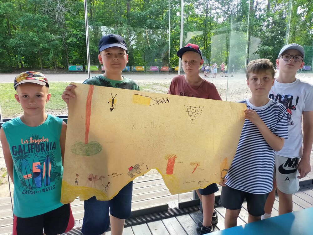 Piątek, piąteczek, piątunio! Dzisiejszy dzień zaczęliśmy razem ze słoneczkiem. Poszliśmy na śniadanie, a następnie udaliśmy się na grę terenową Bitwa Plemion. Była to emocjonująca gra, podczas której musieliśmy szukać i zbierać flagi przeciwników. Następnie poszliśmy na plażę korzystać z promieni słonecznych. Potem odbył się konkurs Talent Show, podczas którego oglądaliśmy zdolnych kolegów i koleżanki, które chciały pochwalić się swoimi umiejętnościami przed publicznością. Później zagraliśmy w grę terenową Detektywi. Używaliśmy specjalistycznego sprzętu i rozwiązywaliśmy zagadki oraz szukaliśmy śladów.