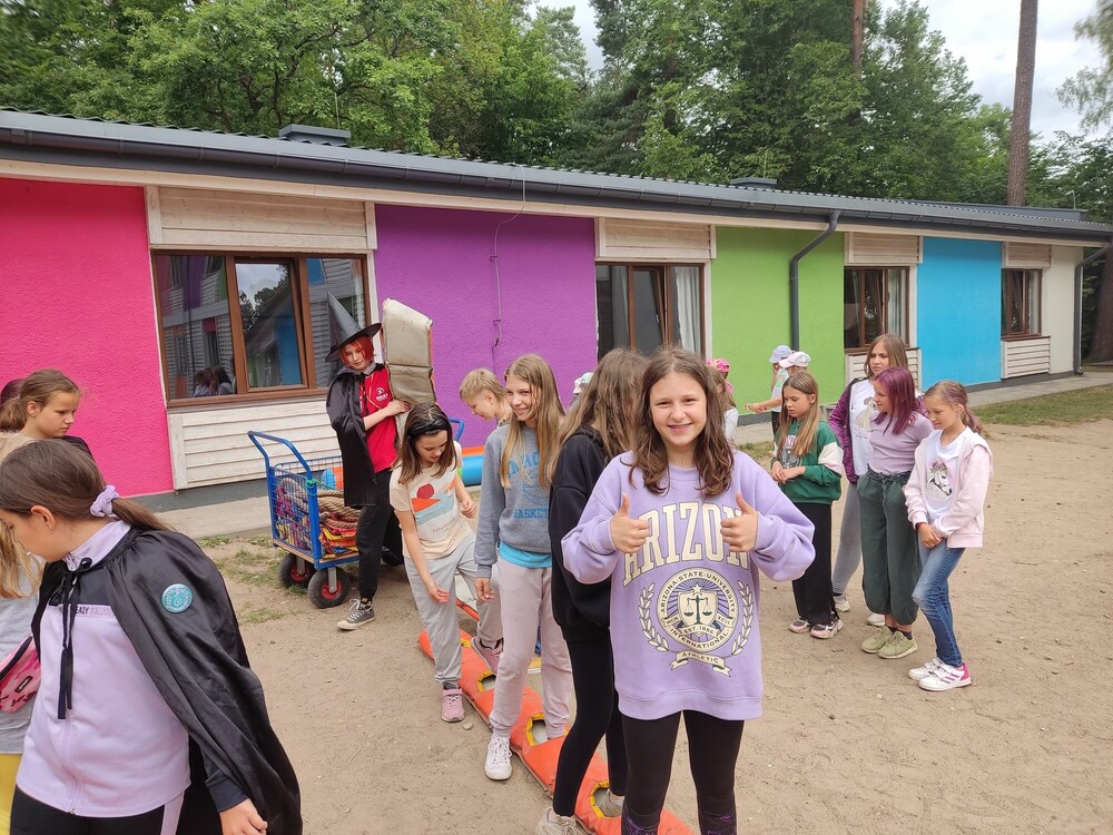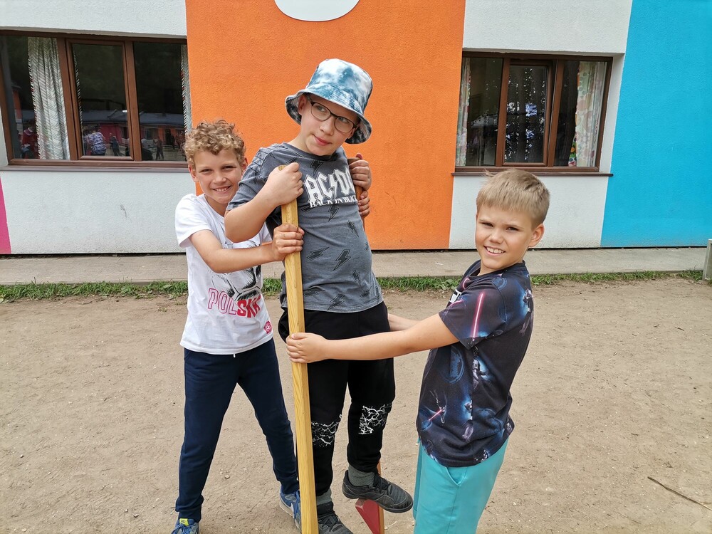 Dzień zaczęliśmy od treningu kosmonauty na żyroskopie, na którym poczuliśmy się jak podczas startu rakiety kosmicznej. Po intensywnym początku dnia poszliśmy odpocząć na plaży i pływać w jeziorze. Następnie nauczyliśmy się strzelać z wiatrówek. Po obiedzie spotkaliśmy się z panią pielęgniarką, a następnie integrowaliśmy się grając w mafię. Później udało nam się przejść oba poziomy parku linowego. Dzień zakończyliśmy walkami sumo.