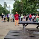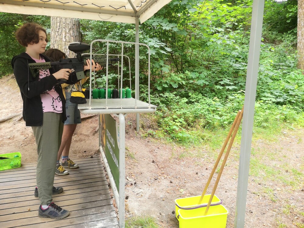 Kolejny dzień na naszym ośrodku już za nami. Rozpoczęliśmy go od stworzenia naszej unikatowej flagi obozowej. Następnie uczestniczyliśmy w treningu snajperskim na strzelnicy paintballowej, a później przechodziliśmy park linowy o dwóch poziomach trudności. Po obiedzie wypoczywaliśmy na plaży i kąpaliśmy się w jeziorze, a potem szkoliliśmy się z musztry. Po kolacji wraz z drugą grupą zagraliśmy w grę Szpion. To był dla nas dzień pełen wrażeń.