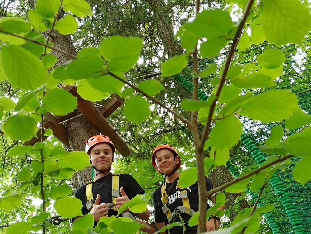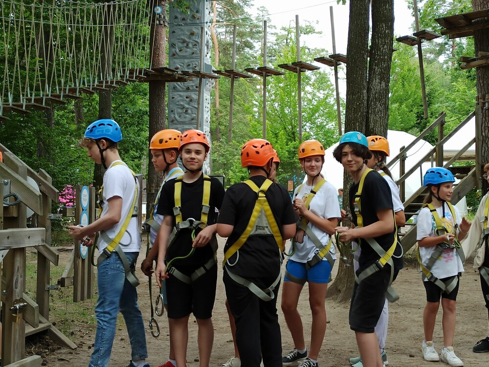 Dzisiejszy dzień rozpoczęliśmy Tajną Misją, czyli grą terenową. Naszym zadaniem było rozwiązanie zagadki i powstrzymanie szaleńca przed zrobieniem czegoś bardzo złego. Następnie byliśmy na seansie w kinie sferycznym 3D. Poznaliśmy też ofertę zajęć fakultatywnych i posłuchaliśmy zaleceń pielęgniarki. Po obiedzie czekało na nas wysokie zadanie, a mianowicie park linowy. Każdy z nas podołał! Byliśmy też na plaży, gdzie się kąpaliśmy, odpoczywaliśmy i graliśmy w gry. Na koniec dnia każdy z nas miał okazję zrobić swoją własną, unikatową przypinkę.