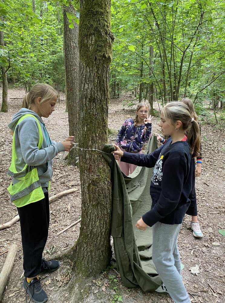 Nasz dzień rozpoczęliśmy od zajęć z survivalu, podczas których nauczyliśmy się budować schronienie oraz prowizoryczne łóżka. Następnie spędziliśmy czas na zajęciach grupowych, graliśmy w piłkę nożną, ciuciubabkę oraz ringo. Przed obiadem poznaliśmy panią pielęgniarkę. Po obiedzie udaliśmy się na zajęcia ze wspinaczki oraz poszliśmy na plażę. Wieczorem zagraliśmy w Gry Świata i poznaliśmy gry z różnych zakątków naszego globu.