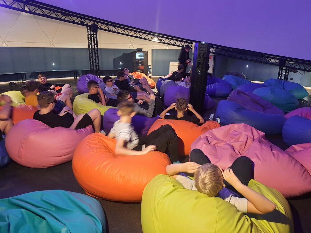 Czwartek rozpoczęliśmy od strzelnicy paintballowej, gdzie odbył się turniej strzelecki do tarcz. Każdy z nas mógł sprawdzić się w umiejętnościach celniczych. Następnie poszliśmy na walki gladiatorów, ubrani w kaski i zaopatrzeni w gumowe lance rywalizowaliśmy na specjalnej, kolorowej macie o tytuł Prawdziwego Gladiatora. Po pysznym obiedzie wypłynęliśmy smoczą łodzią w podróż po jeziorze Łęsk, mogliśmy obserwować piękne widoki. Kolejno budowaliśmy wieżę ze skrzynek i ubrani w specjalną uprząż jednocześnie się po niej wspinaliśmy. Wieczorem udaliśmy się do kina 3D, gdzie obejrzeliśmy fascynujący film o kosmosie, to był idealny relaks na zakończenie dnia!