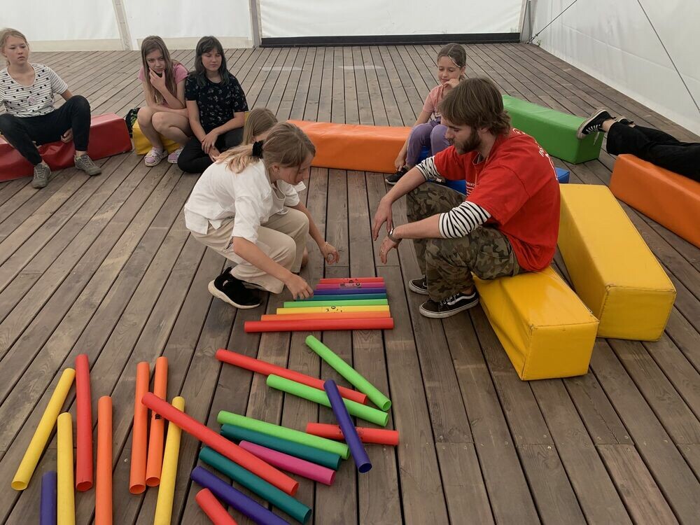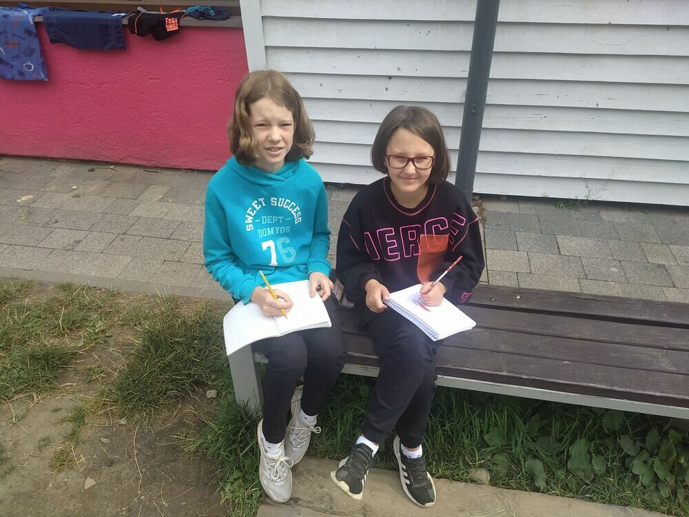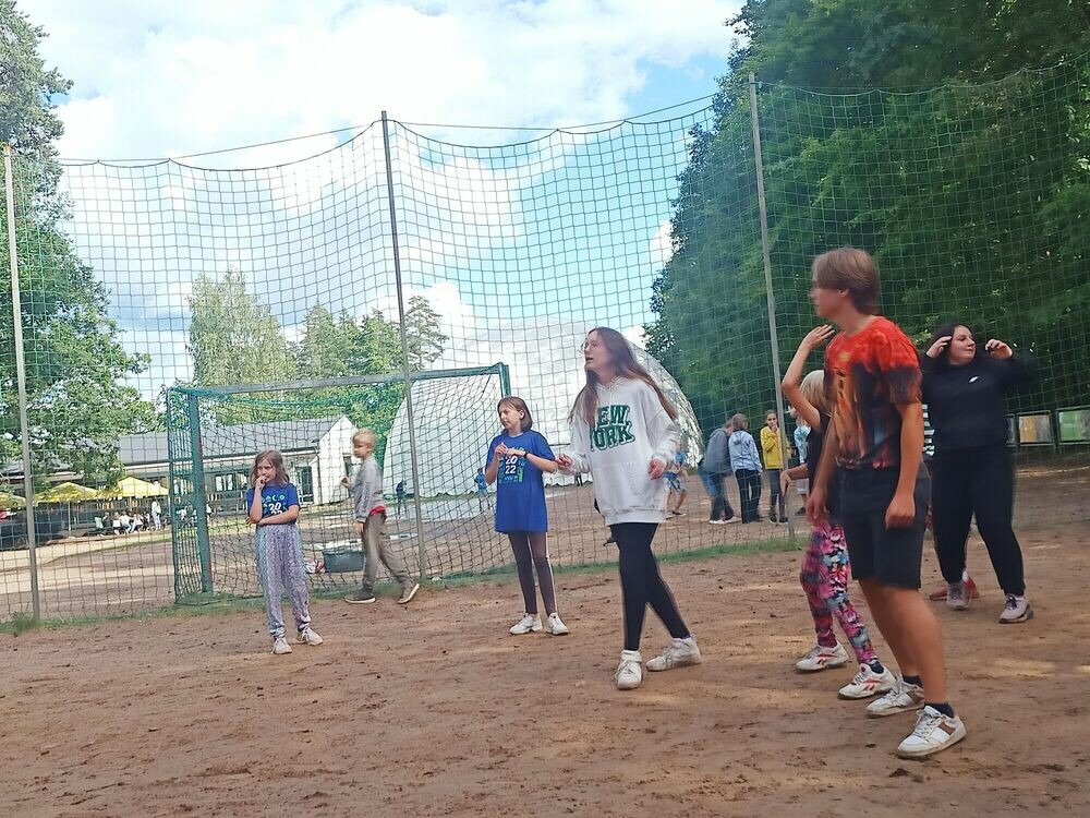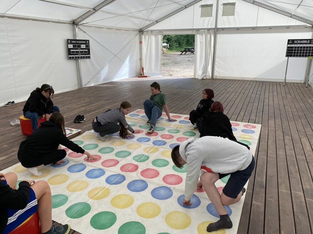 Dziś rano pływałyśmy rowerami wodnymi. Następnie wzięłyśmy udział w castingu do pokazu talentów. Potem odpowiadałyśmy na pytania podczas gry francuskiej. Próbowałyśmy utrzymać się w pionie w dmuchanej kuli pływającej na wodzie. Byłyśmy również na plaży, podziwiałyśmy piękno przyrody i pływałyśmy. Poznałyśmy gry świata, takie jak bule, molkky i kubb. Wieczorem wyruszyłyśmy do lasu na grę terenową Mafia.