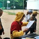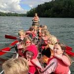 W poniedziałkowy ranek udaliśmy się na naszą plażę, by wyruszyć w wyprawę godną wikingów na jednej z naszych smoczych łodzi. Przy akompaniamencie bębna nadającego rytm wiosłowaniu, przeprawiliśmy się przez jezioro Łęsk. Była to jak dotąd najdłuższa pokonana przez nas trasa na jeziorze. Po tej klimatycznej podróży, zostaliśmy na plaży. Tam oddaliśmy się lekturze, zmierzyliśmy się w różnych grach zespołowych, graliśmy w gry integracyjne. Następnie rozegraliśmy kilka meczy korfballu. Gra była emocjonująca. Ostatnią atrakcją, jaka czekała na nas tego dnia było karaoke. Śpiewaliśmy na nim hity polskie i zagraniczne. Nie możemy doczekać się jutra.
