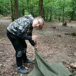 Dzień zaczęliśmy od zajęć z pierwszej pomocy. Uczyliśmy się między innymi o złamaniach, krwotokach i oparzeniach. Mieliśmy też za zadanie zbudować nosze i przenieść rannego lotnika. Następnie uczyliśmy się pływać na kajakach sit on top. Udało się nam ukończyć zajęcia przed ulewą! Mieliśmy też zajęcia z survivalu. Teraz każdy z nas już wie, co można zbierać w lesie, jak się maskować i jak bezszelestnie się poruszać. Pod koniec zajęć między nami znalazło się kilku mistrzów maskowania. Dzień zakończyliśmy wspólnym oglądaniem filmu.