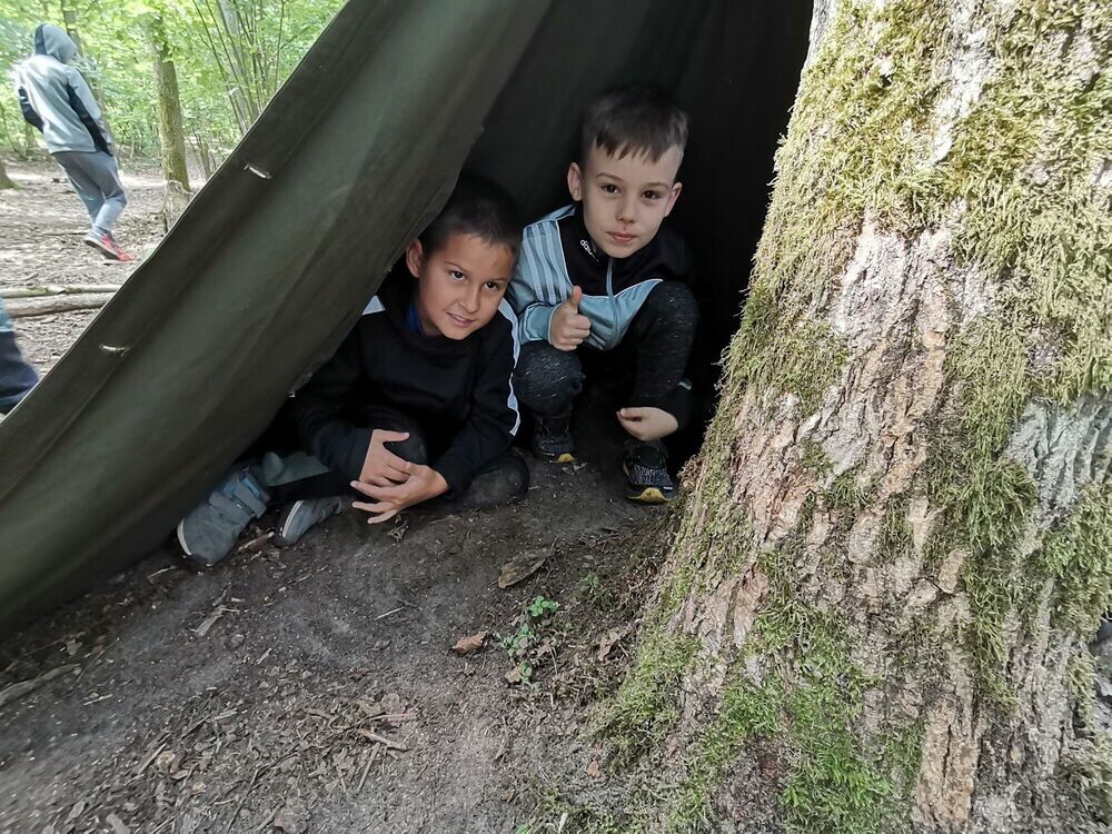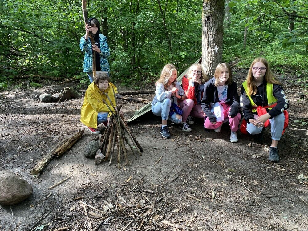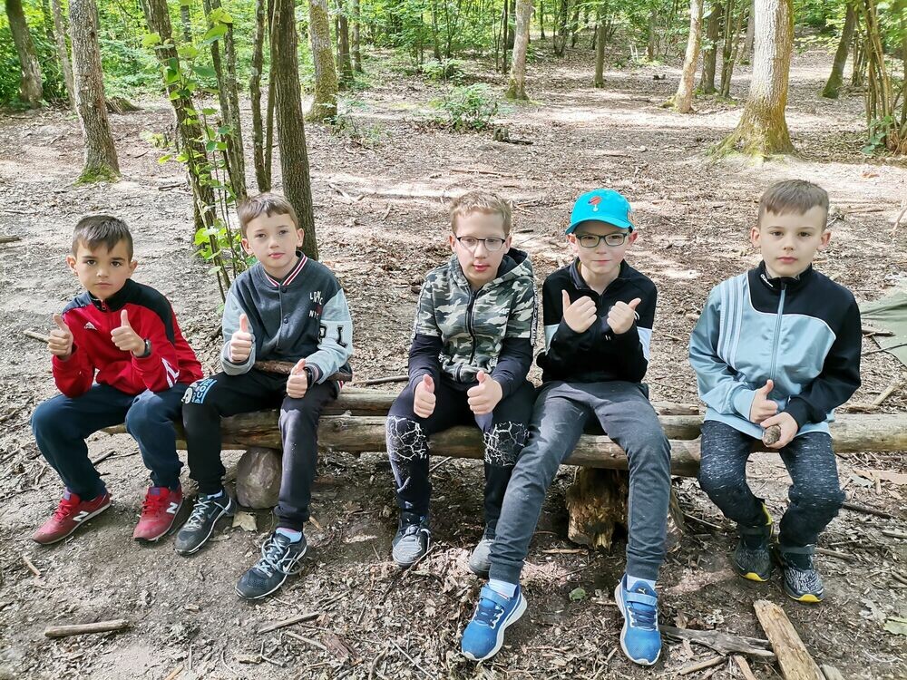 Rankiem przywitało nas dzisiaj piękne słońce. Dzień rozpoczęliśmy od zajęć z survivalu, na których dowiedzieliśmy się, czym jest puszka survivalowa oraz zbudowaliśmy schronienia. Potem razem z innymi grupami zagraliśmy w grę francuską oraz rywalizowaliśmy podczas różnych zabaw sportowych. Po południu wykonaliśmy własne bransoletki ze sznurka. Poza tym graliśmy w piłkę na opak oraz przechodziliśmy przez tory na parku linowym. Kolejny dzień za nami. Czekamy z niecierpliwością na jutro.