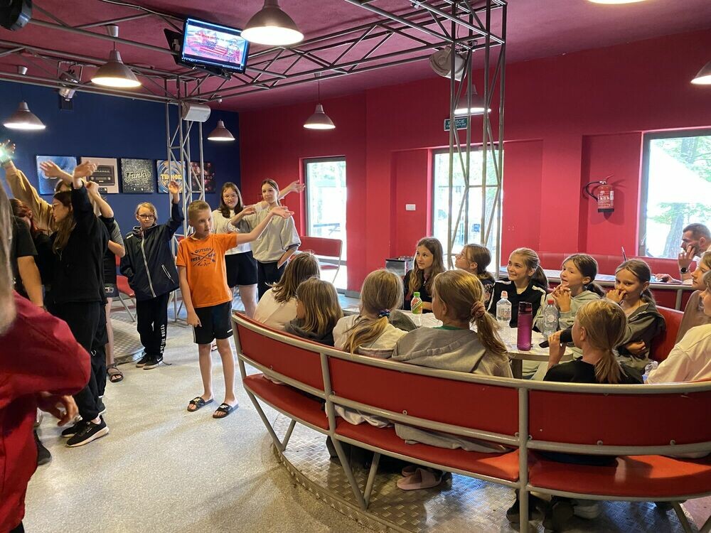 Rozpoczęliśmy od magicznych dywanów, czyli gier interaktywnych wyświetlanych na podłodze. Zagraliśmy w rożnego rodzaju quizy i gry wymagające naszego refleksu. Następnie z instruktorem udaliśmy się na strzelanie z wiatrówek. Bardzo spodobała się nam ta aktywność. Przed obiadem zagraliśmy wspólnie w siatkówkę oraz uno. Zostaliśmy dzisiaj wprowadzeni w pierwszy stopnień tajności i udaliśmy się do Strefy UFO. Zadawaliśmy dużo pytań, zagraliśmy w kosmiczny quiz i dowiedzieliśmy się dużo rzeczy o tajnej bazie. Zagraliśmy dzisiaj też w mega gry. Zmierzyliśmy się ze sobą w mega twistera oraz mega bierki. Śmiechu było wiele i chętnie byśmy to powtórzyli. To nie był koniec atrakcji na ten dzień. Ostatnim punktem naszego programu była nocna gra terenowa Mafia. Naszym zadaniem było znalezienie przestępcy, który działał w pewnym włoskim miasteczku. Pięknie poradziliśmy sobie z tym zadaniem i bawiliśmy się fantastycznie.