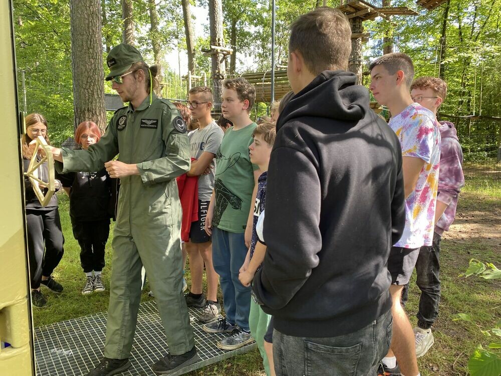 Dzień rozpoczęliśmy od zajęć z łączności. Poznawaliśmy działanie telefonów polowych i uczyliśmy się szyfrować wiadomości, a następnie zdobytą wiedzę wykorzystywaliśmy rozwiązując zagadki w grze terenowej na ośrodku. Później na zajęciach z survivalu rozpalaliśmy ogień przy pomocy krzemienia i poznawaliśmy różne stosy ogniskowe, a także filtrowaliśmy wodę przy pomocy specjalnie przygotowanych butelek. Po obiedzie utrwalaliśmy sobie wiedzę z pierwszej pomocy, a następnie budowaliśmy nosze i braliśmy udział w fabularyzowanej grze Ranny Lotnik. Wieczorem trenowaliśmy chodzenie w formacjach i przybieranie wojskowych pozycji. Ten dzień był dla nas pełen wrażeń.
