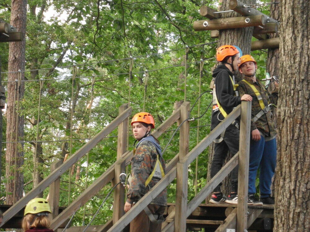 Dzień rozpoczęliśmy od gry w siatkówkę, badmintona i mafię. Następnie wybraliśmy się do parku linowego, żeby pokonać wyznaczone tam trasy. Potem ulepszaliśmy nasze umiejętności pływackie pod okiem ratownika. Następnie zagraliśmy w Bitwę Plemion w lesie. Potem graliśmy w badmintona i piłkę nożną. Wieczorem graliśmy w grę terenową Mafia.