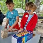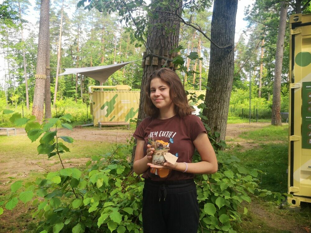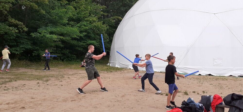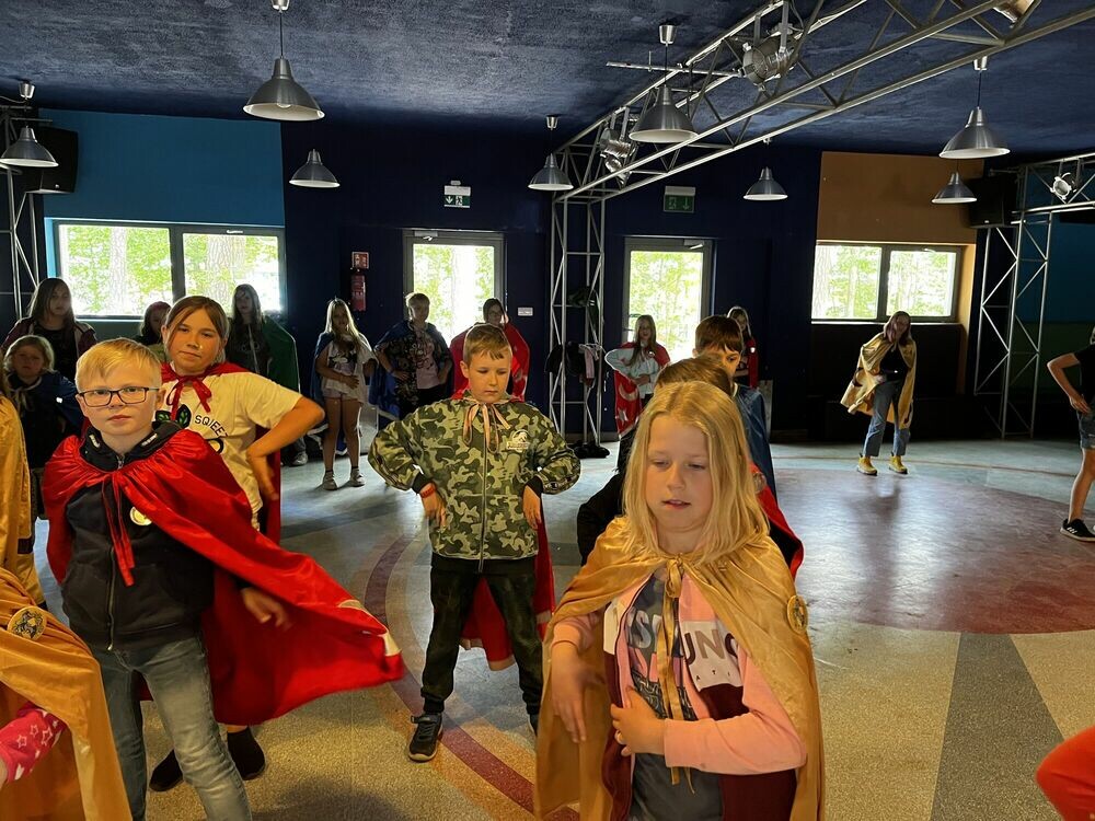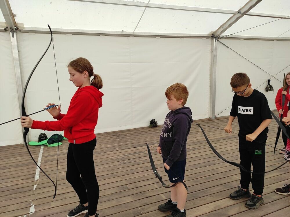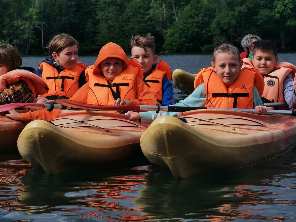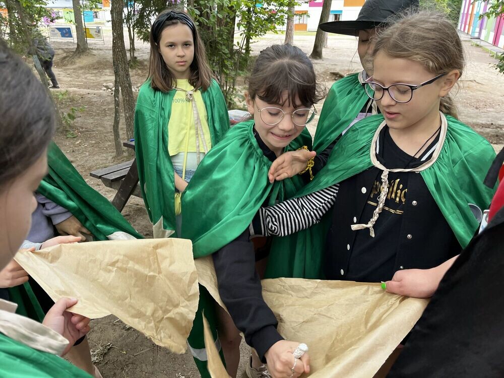 Piątek był dla nas dniem pełnym wrażeń. Pływaliśmy kajakami po jeziorze, uczyliśmy się pierwszej pomocy i budowaliśmy nosze. Później podzieliliśmy się na dwa plemiona, stworzyliśmy ich flagi oraz walczyliśmy o nie w leśnej Bitwie Plemion pod opieką instruktora i wychowawczyni. Tworzyliśmy też galaretkową planetę Ukkla podczas warsztatów kulinarnych. Potem mieliśmy naukę władania specjalnym mieczem, a na zakończenie dnia apel oraz dyskotekę. To był wspaniały czas z wyjątkowymi ludźmi.