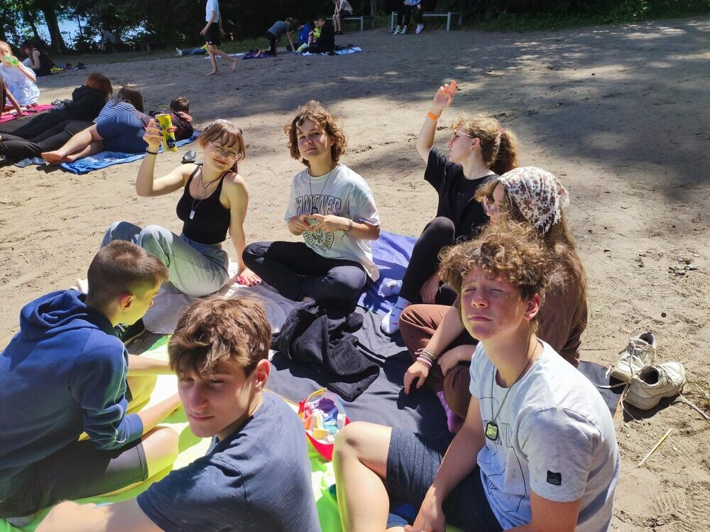 Korzystając z ładnej pogody dzień rozpoczęliśmy od baloniady, czyli przerzucania z pomocą ręczników balonów z wodą przez siatkę. Zagraliśmy również mecz w siatkówkę. Następnie zaprojektowaliśmy unikatowy znaczek, który stał się pamiątkową przypinką dla każdego. Wybraliśmy się również na plażę, gdzie leżeliśmy na kocach oraz kąpaliśmy się w jeziorze. Dzień zakończyliśmy apelem, podczas którego podsumowany został turnus oraz pożegnaliśmy się z kadrą. Był to wspaniały dzień, który będziemy długo wspominać.