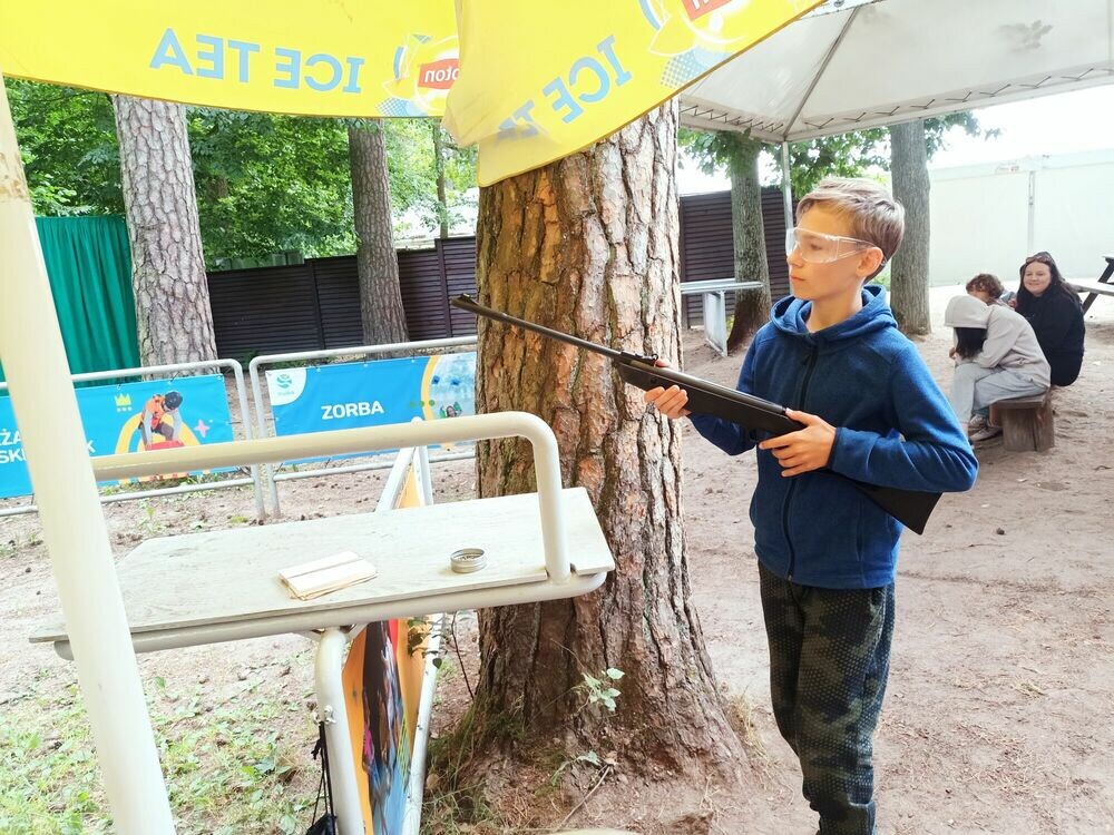 Piątek rozpoczęliśmy od profesjonalnie przeprowadzonej baloniady. Następnie mieliśmy okazję zmierzyć się w parach w strzelaniu z wiatrówek. Dostaliśmy na pamiątkę nawet nasze tarcze, do których strzelaliśmy. Później mieliśmy czas na przygotowania do powrotu do domu, czyli spakowanie części rzeczy i posprzątanie. Po obiedzie kolejna dawka zdrowej rywalizacji w postaci walk gladiatorów. Trzecie miejsce zajął Miłosz, drugie Wiktor a naszym mistrzem został Błażej. Później mogliśmy poznać tajemnice szyfrowania na zajęciach Enigma. Poznaliśmy różne metody szyfrowania, jak np. czekoladka. Chwilę przed kolacją mieliśmy czas na wyszykowanie się na apel końcowy, który podsumował nasze przygody.